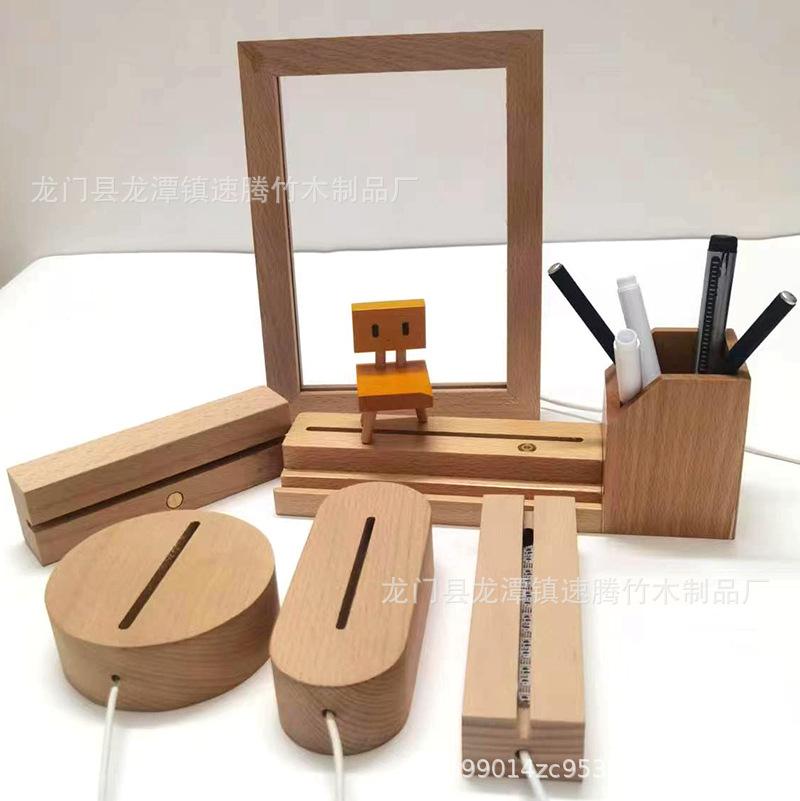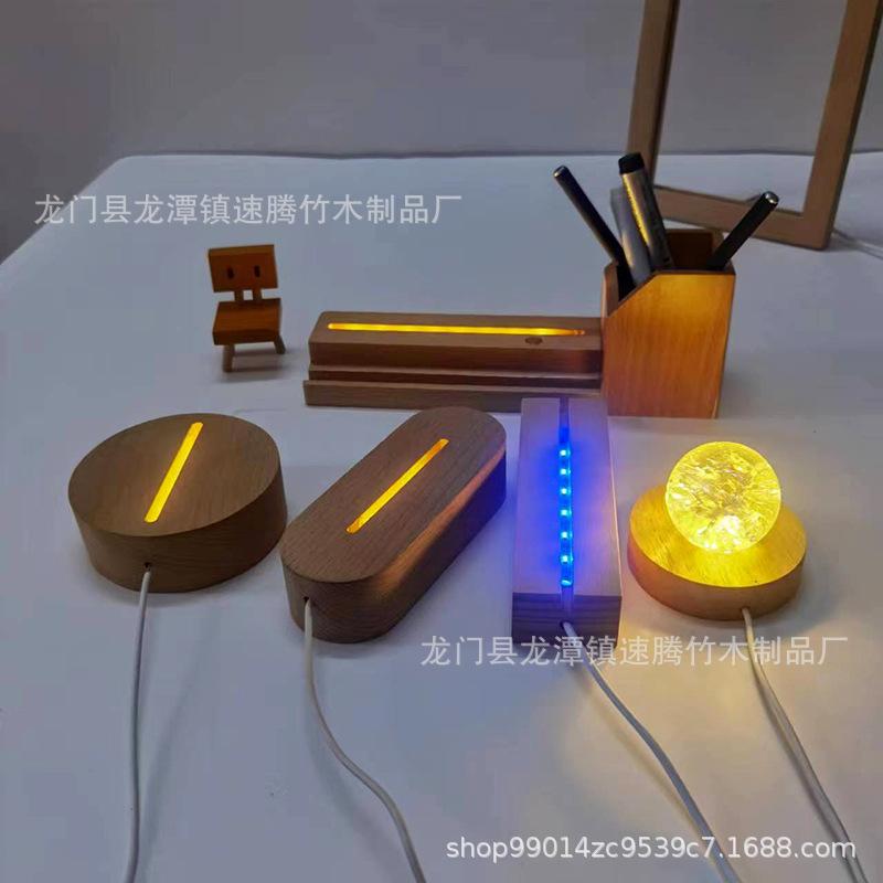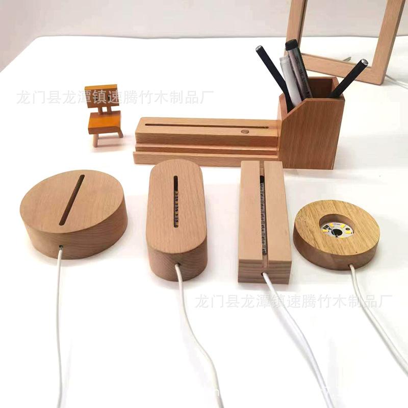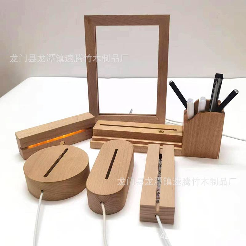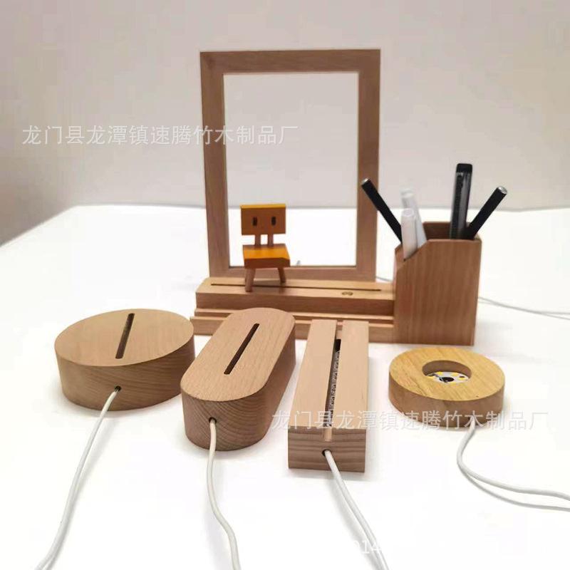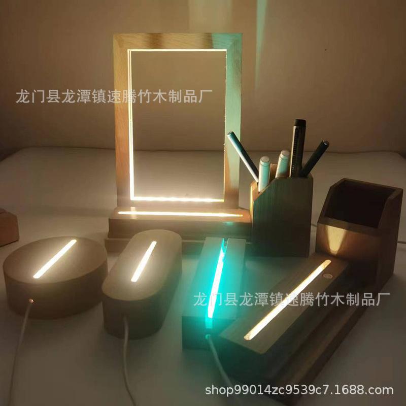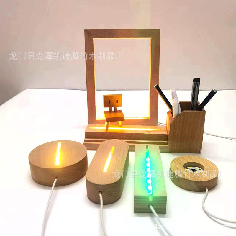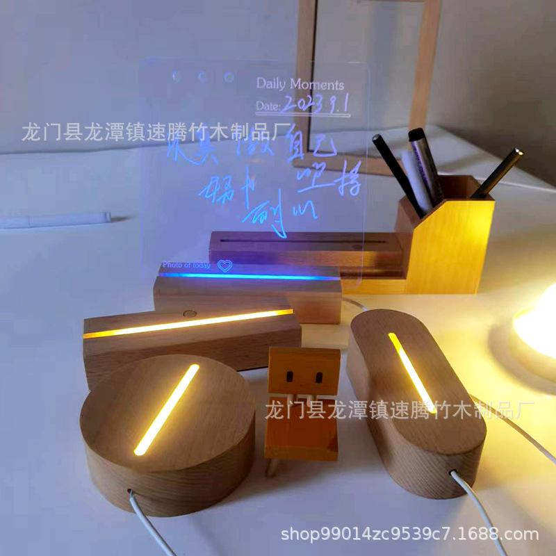 Luz nocturna acrílica 3D luminosa con base de madera maciza, portalámparas rectangular DIY, decoración, interruptor de carga USB, lámpara de mesa pequeña