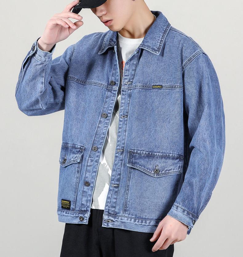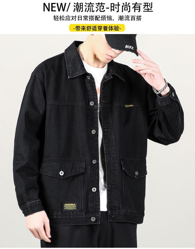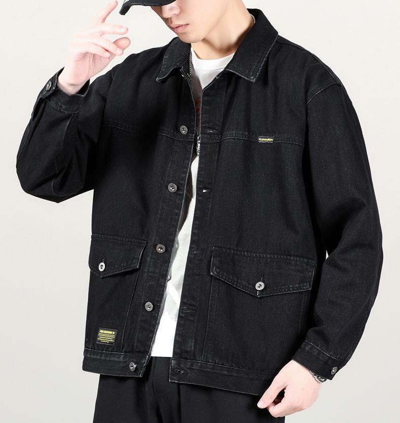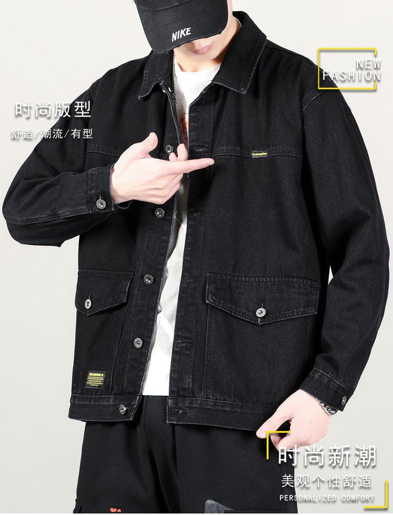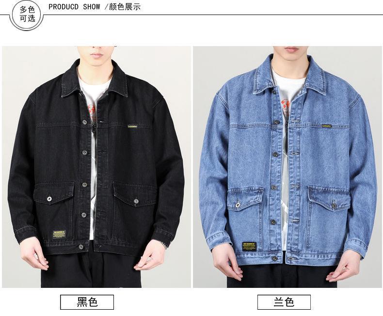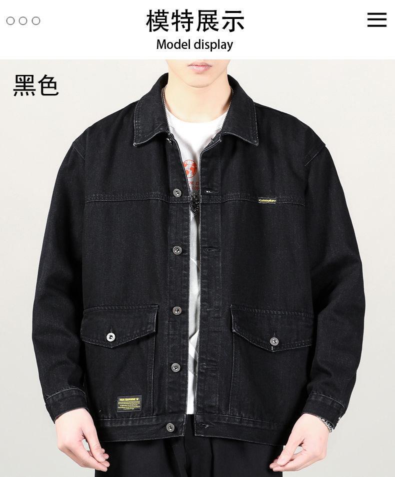 Chaqueta vaquera de alta gama de otoño para hombre, holgada, multibolsillos, moderna, combinable, elegante, de talla grande, con solapa, informal