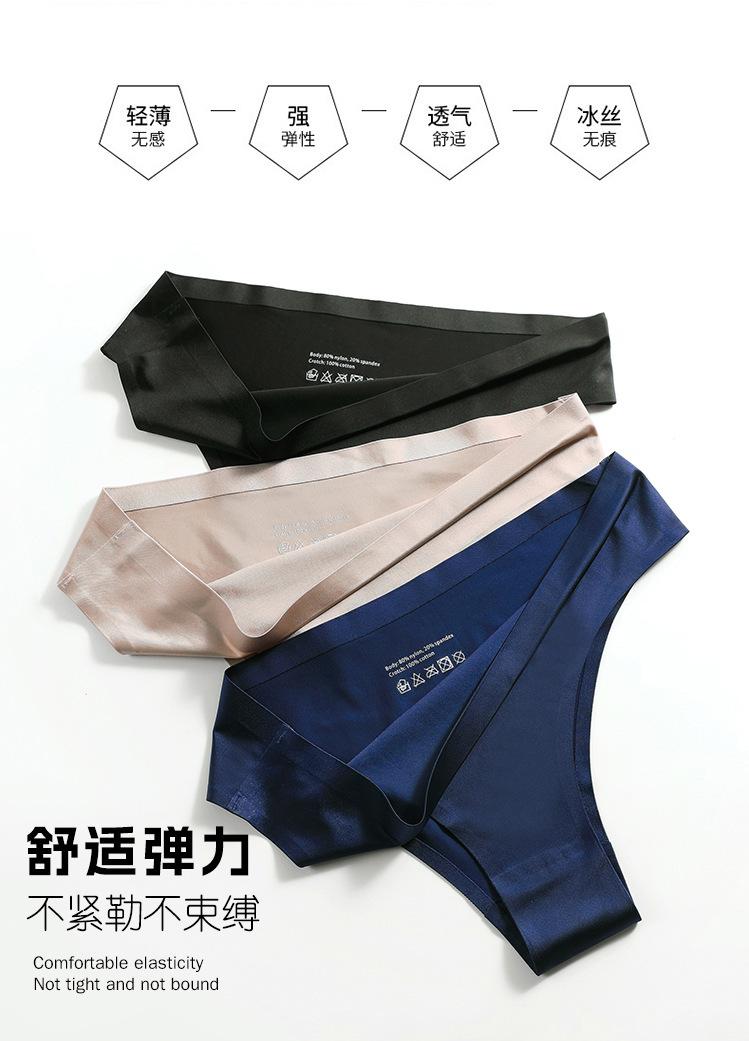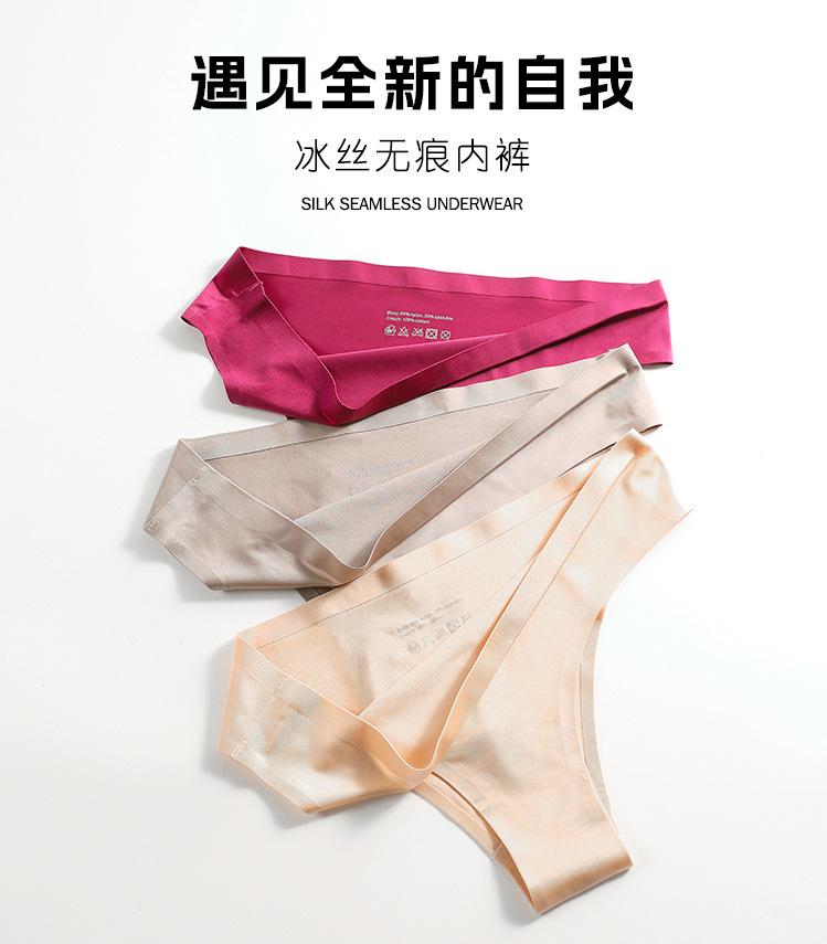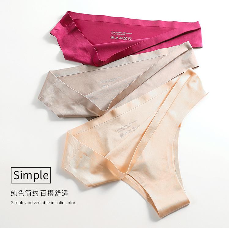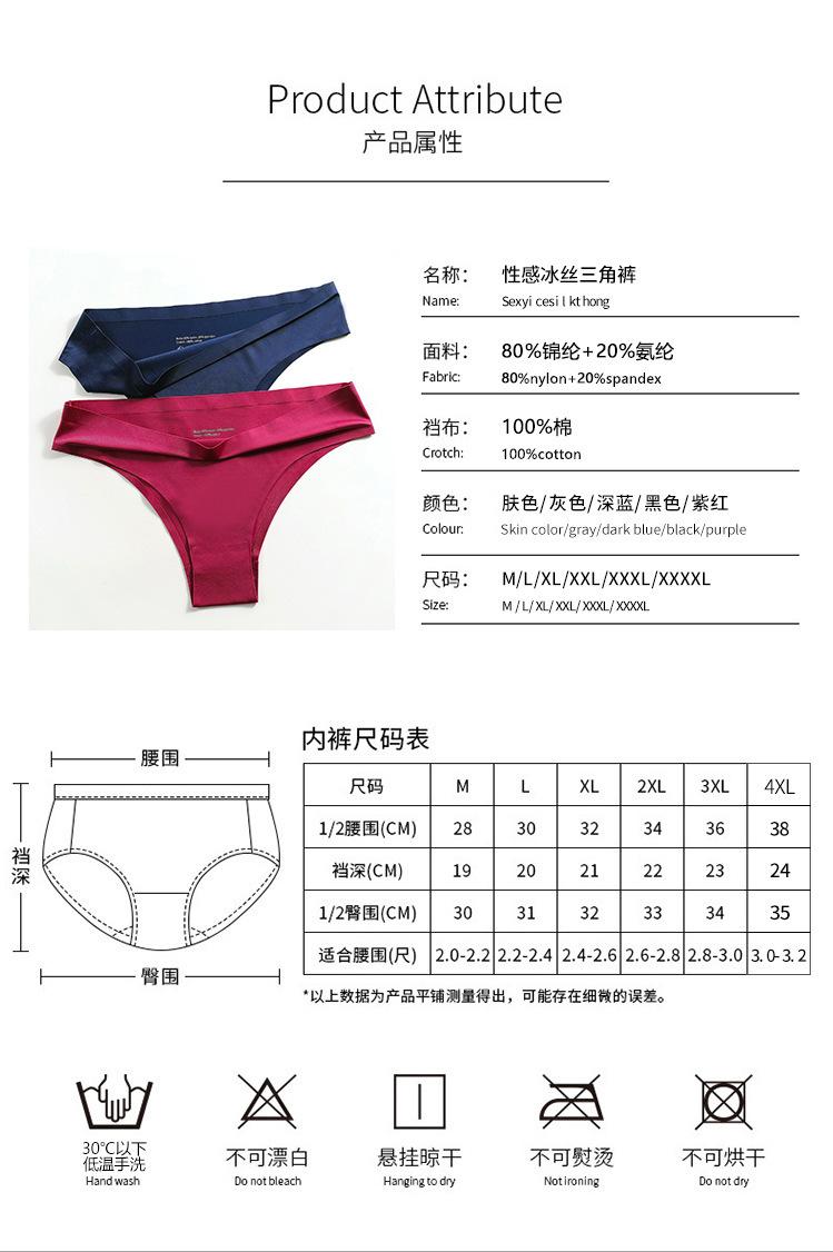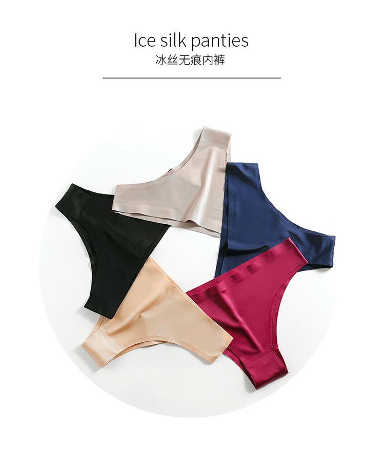 Tanga triángulo sin costuras de seda de hielo de talla grande para mujer, ropa interior sexy de tiro bajo para mujeres jóvenes
