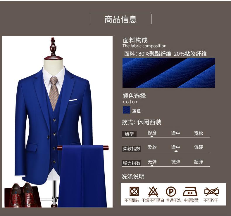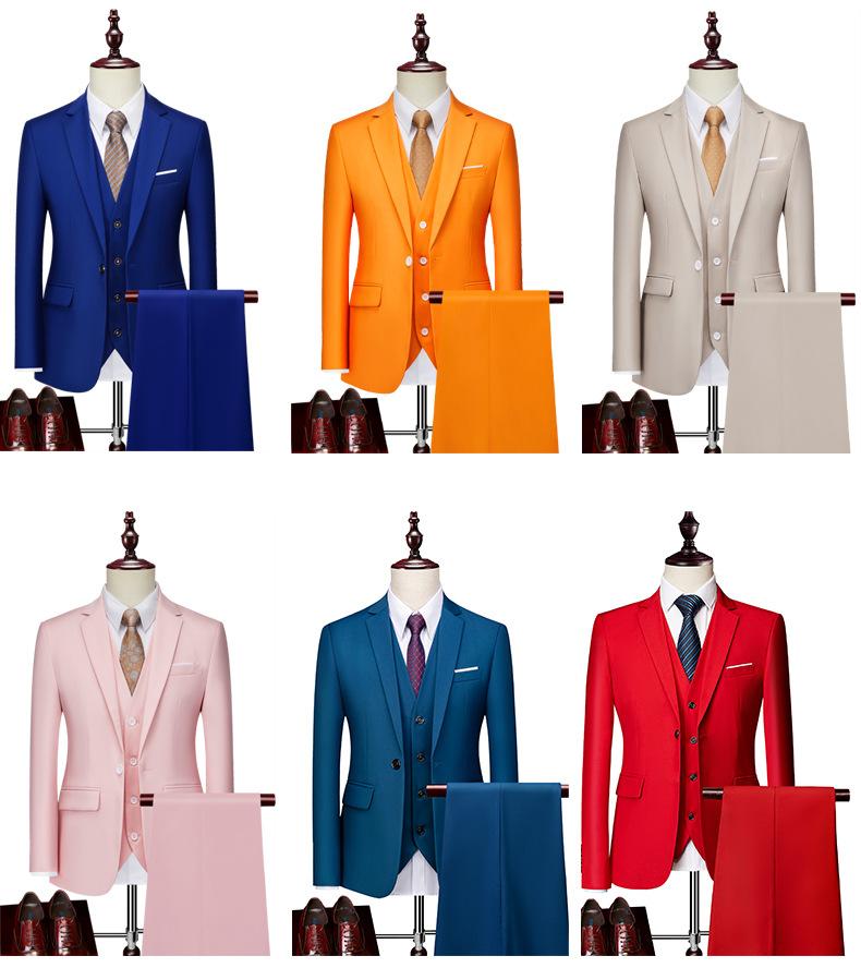 Traje casual de alta gama para hombre, traje de moda de una sola fila con un botón, traje profesional de negocios de talla grande, traje de tres piezas en 15 colores