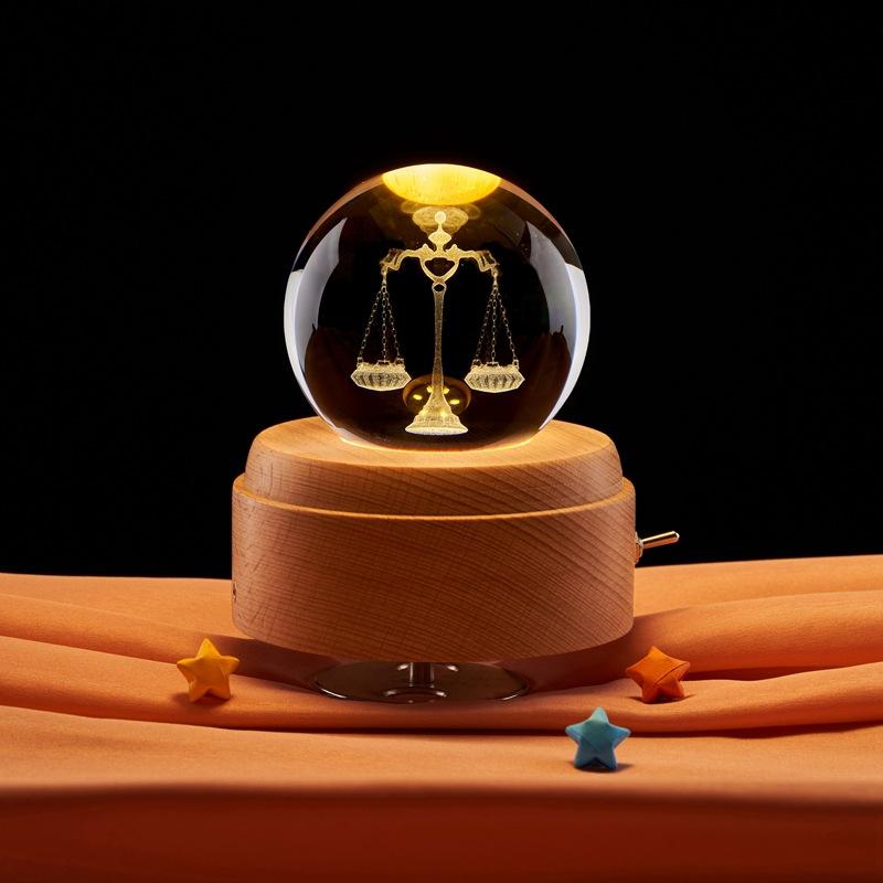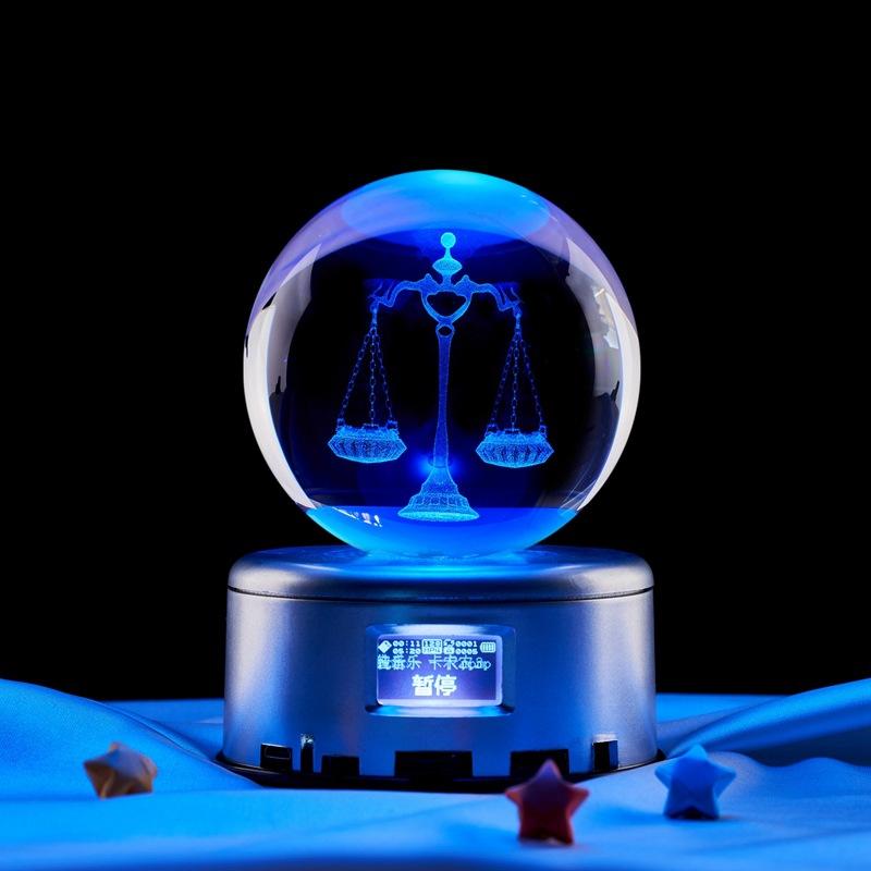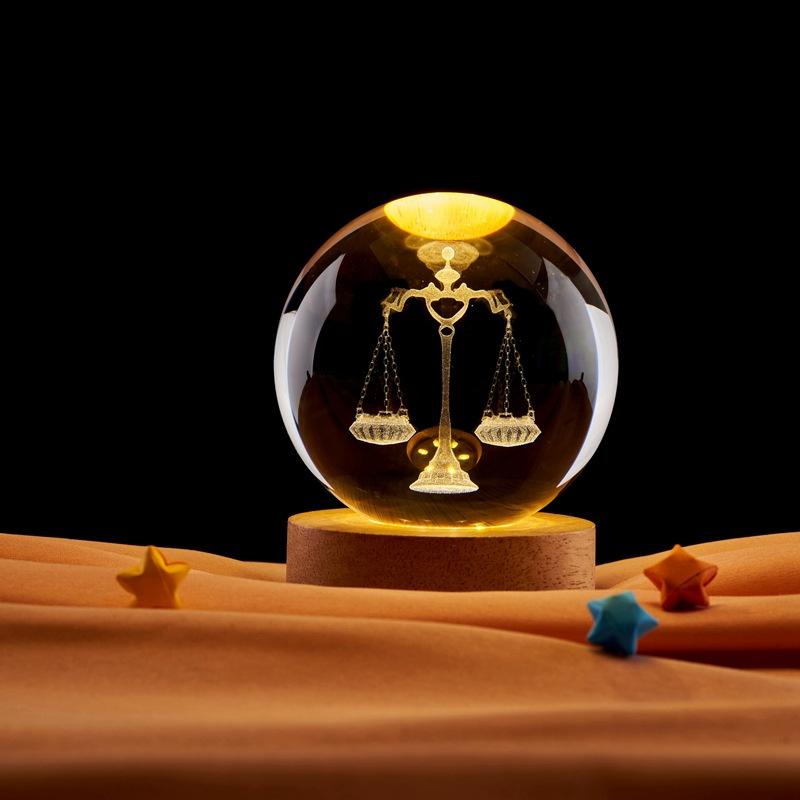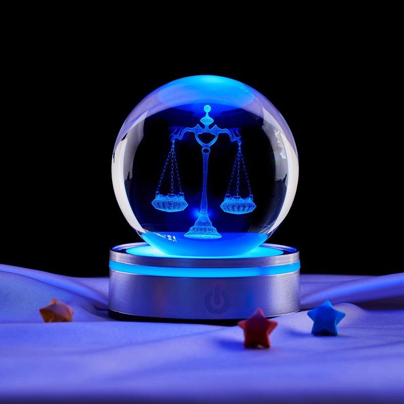 Bola de cristal con grabado láser 3D de Libra, luz nocturna luminosa creativa, adornos artesanales