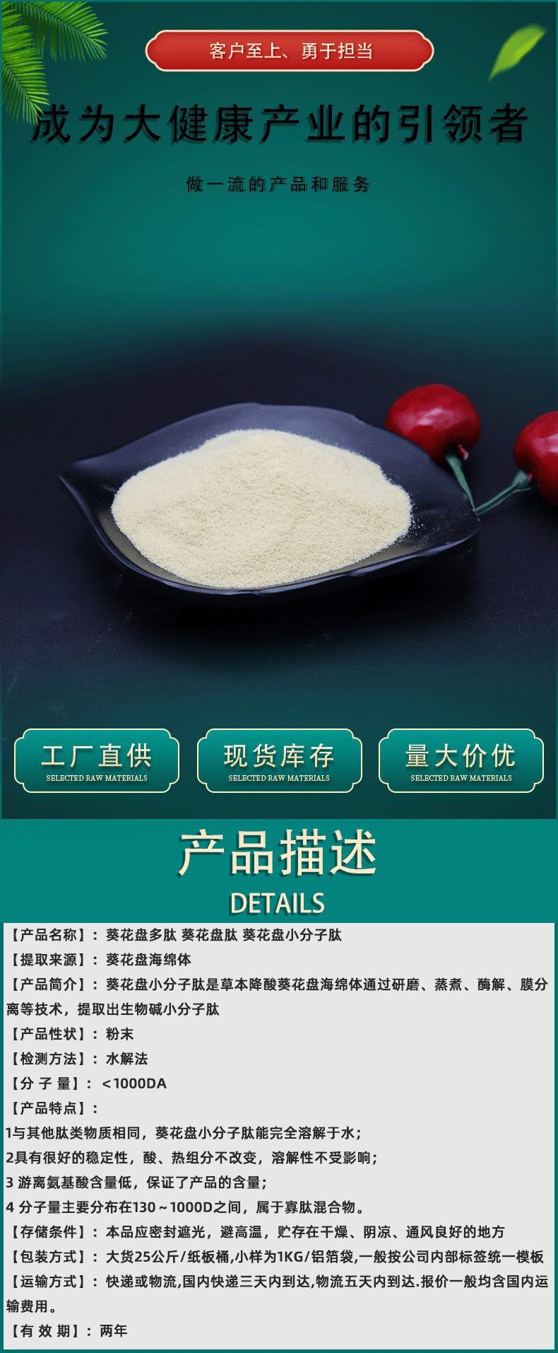 Compra Péptido de placa de girasol 99% Fruto de madera Péptido de placa de girasol biológico de molécula pequeña <1000Da 500 g/bolsa envío gratis al por mayor en Joom.pro