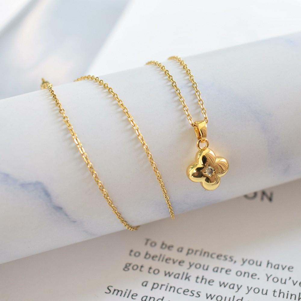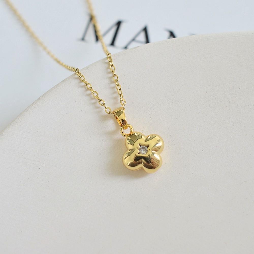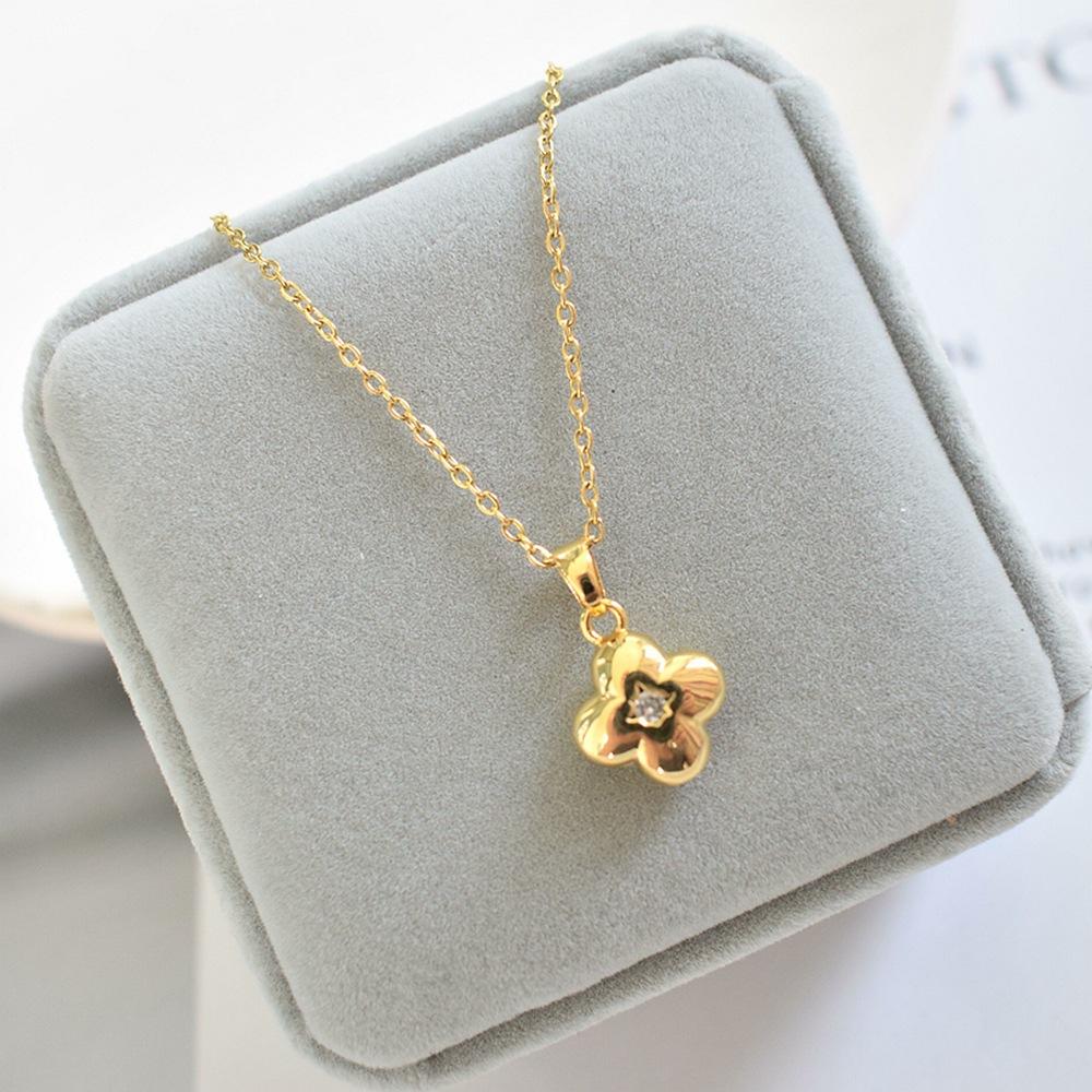 Collar de Trébol de Cuatro Hojas Popular Europeo y Americano Más Vendido Transfronterizo con Circonita Incrustada de Lujo Ligero de Alta Gama Versátil Moderno Moda Temperamento