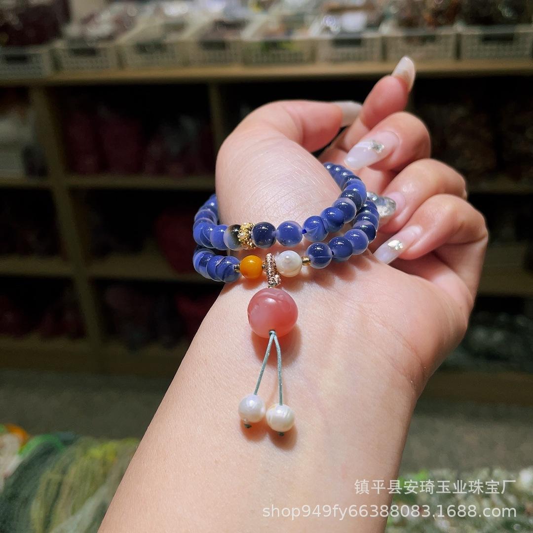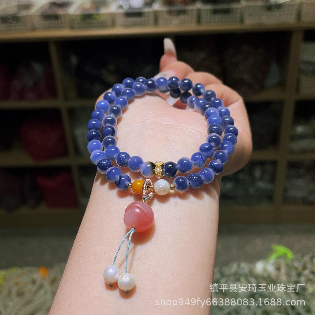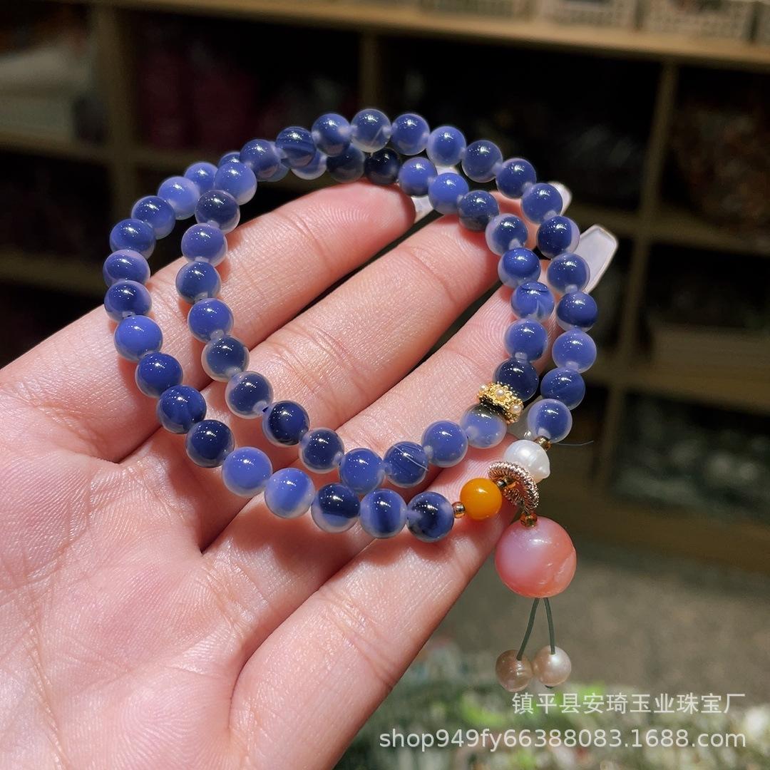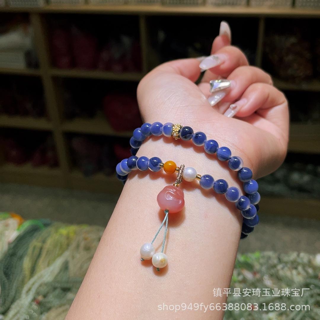 Venta al por mayor de fábrica ágata corazón de azúcar natural pulsera de doble anillo accesorios para mujer ágata Yanyuan cuentas redondas pulsera de ágata corazón de azúcar