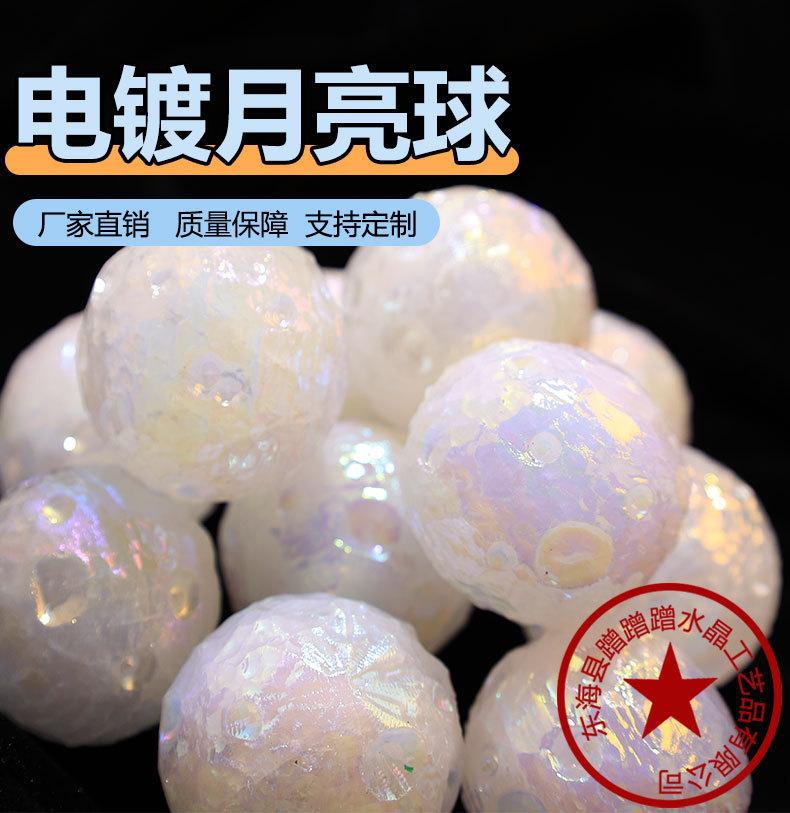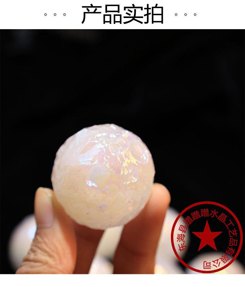 Bolas de luna de cristal blanco natural, talladas con galvanoplastia, piezas de piedra cruda, mineral, cristal pulido, adornos artesanales al por mayor