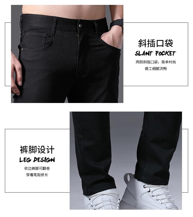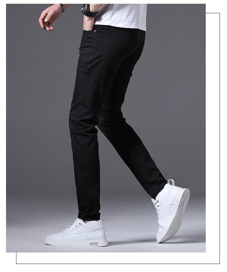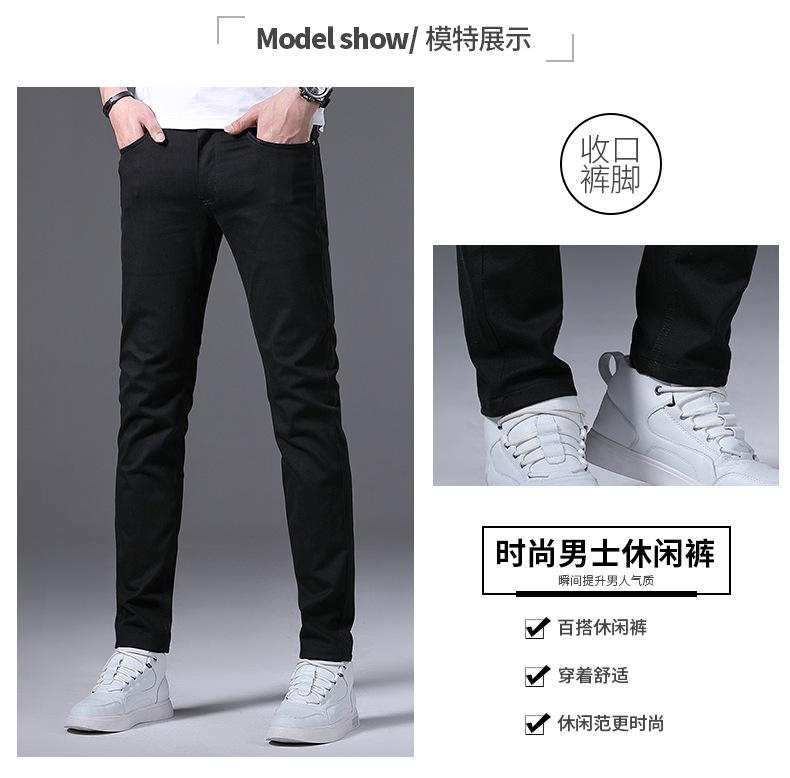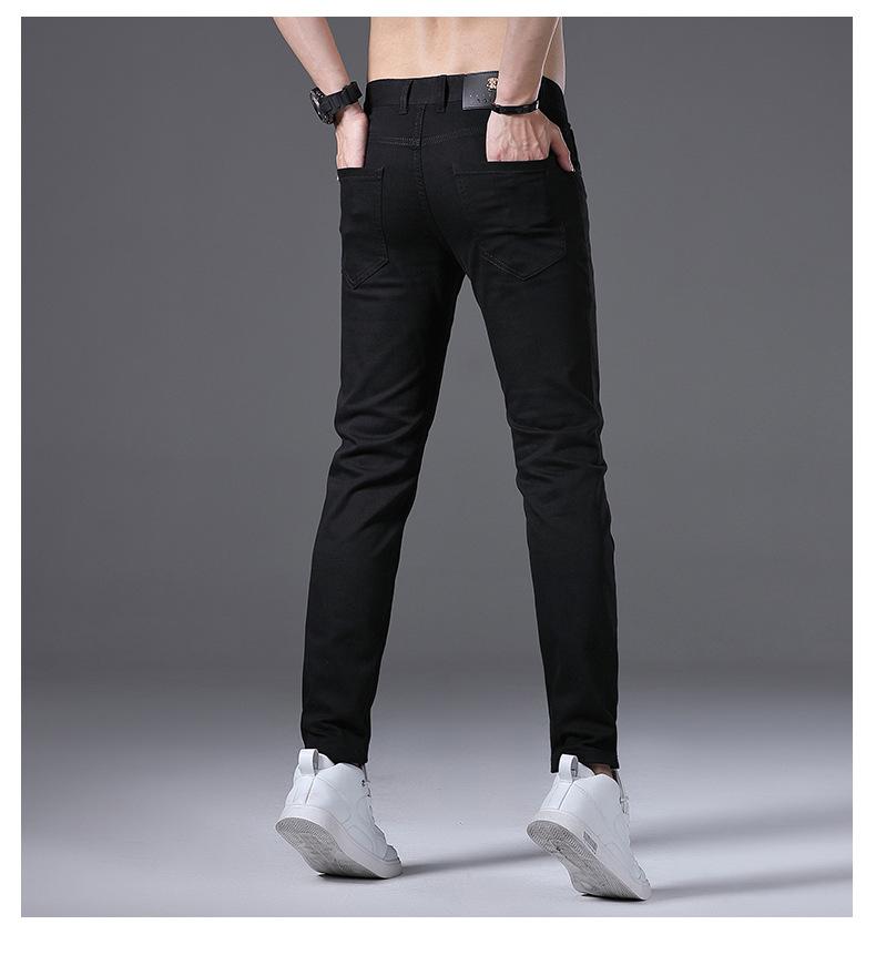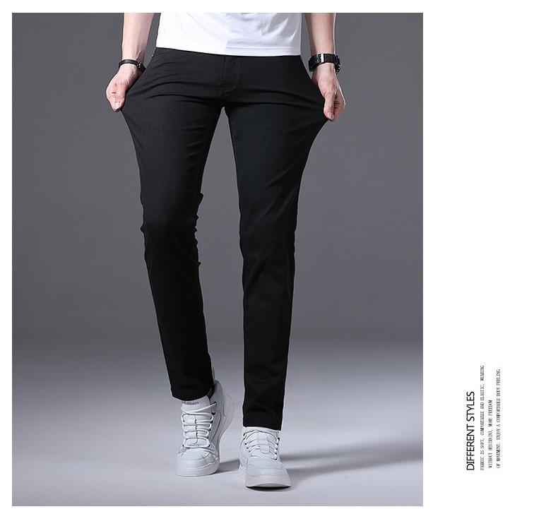 Pantalones vaqueros negros finos de verano para hombre, pantalones ajustados elásticos, pantalones casuales de alta gama, productos europeos 2024, nuevos y a juego.