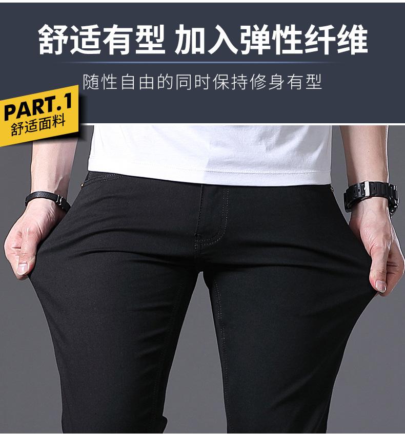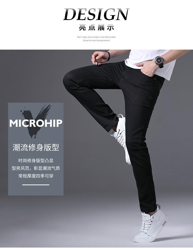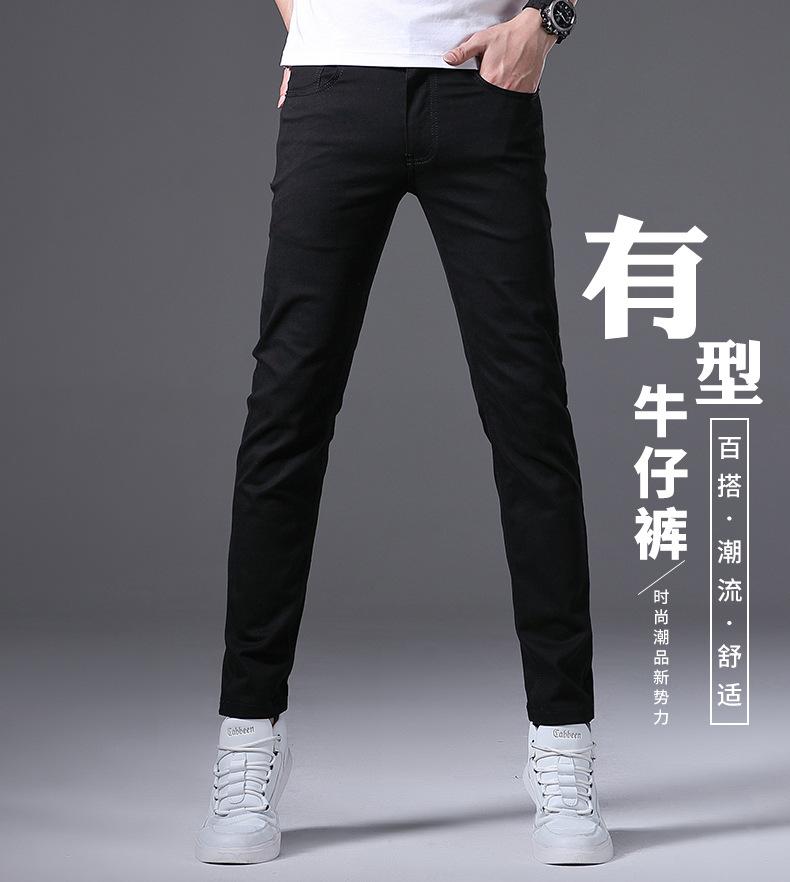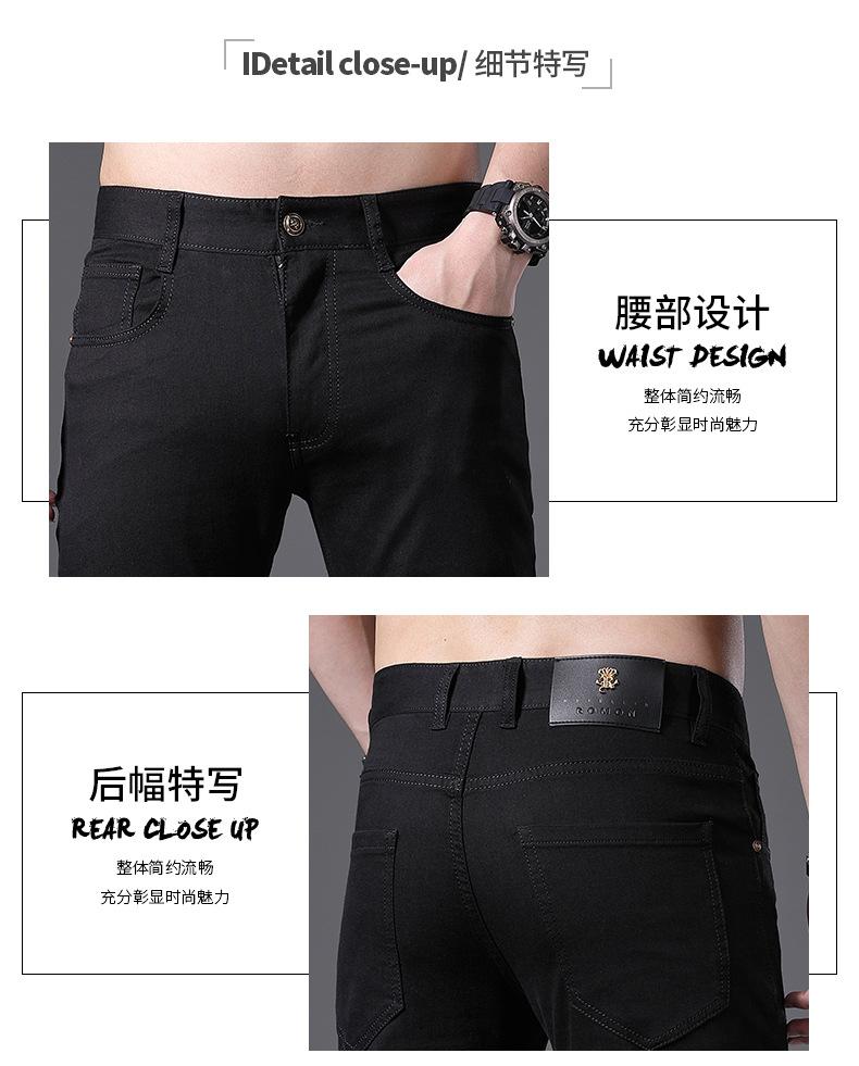Pantalones vaqueros negros finos de verano para hombre, pantalones ajustados elásticos, pantalones casuales de alta gama, productos europeos 2024, nuevos y a juego.
