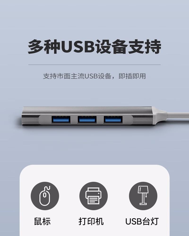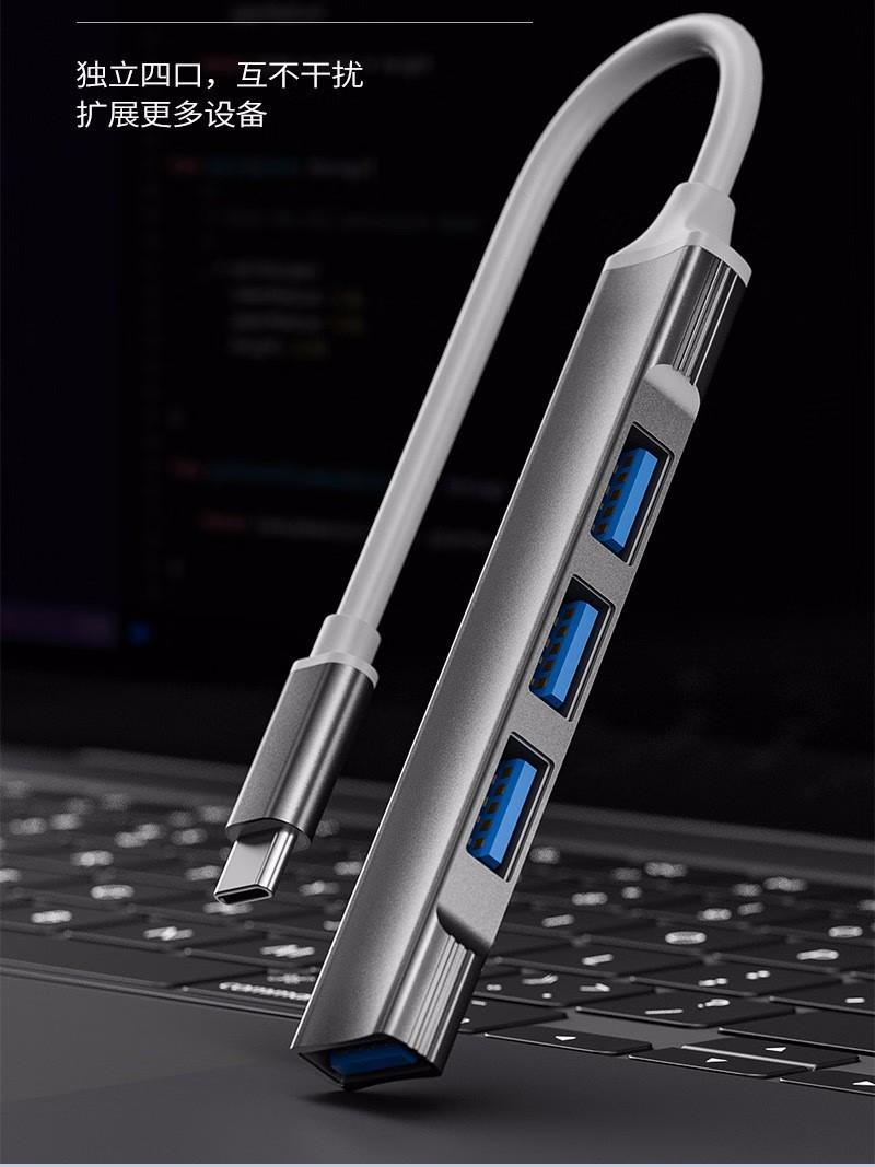 Extensor USB 3.0 tipo C de uno a cuatro puertos para teléfono móvil, portátil, disco U, base de expansión multifunción