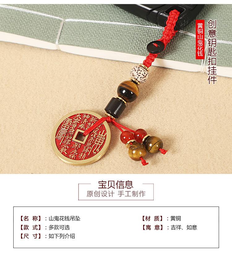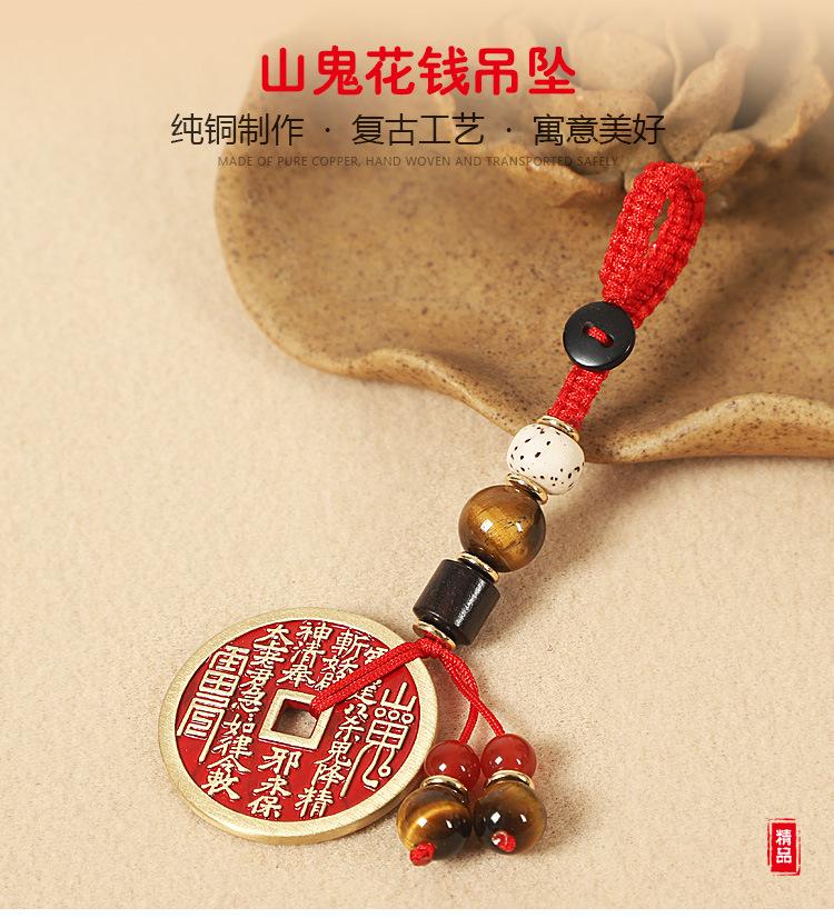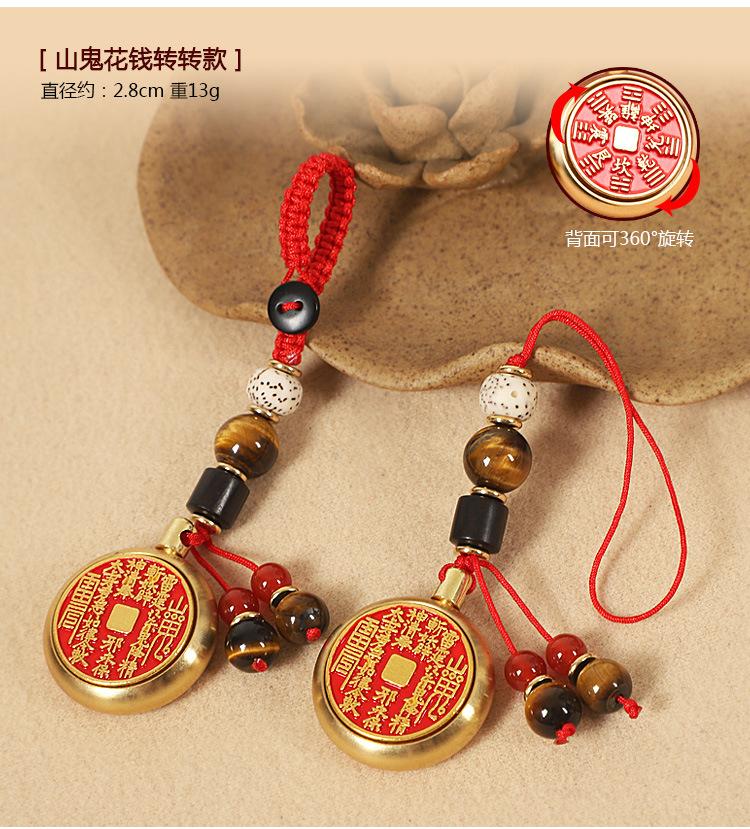Pure copper cinnabar mountain ghost money-diameter 2.8cm-lanyard style