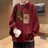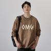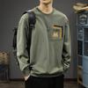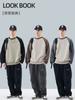 Suéter pesado retro americano de otoño para hombre, camiseta holgada de marca de moda, camisa de fondo de color contrastante, cuello redondo, manga larga, top para hombre