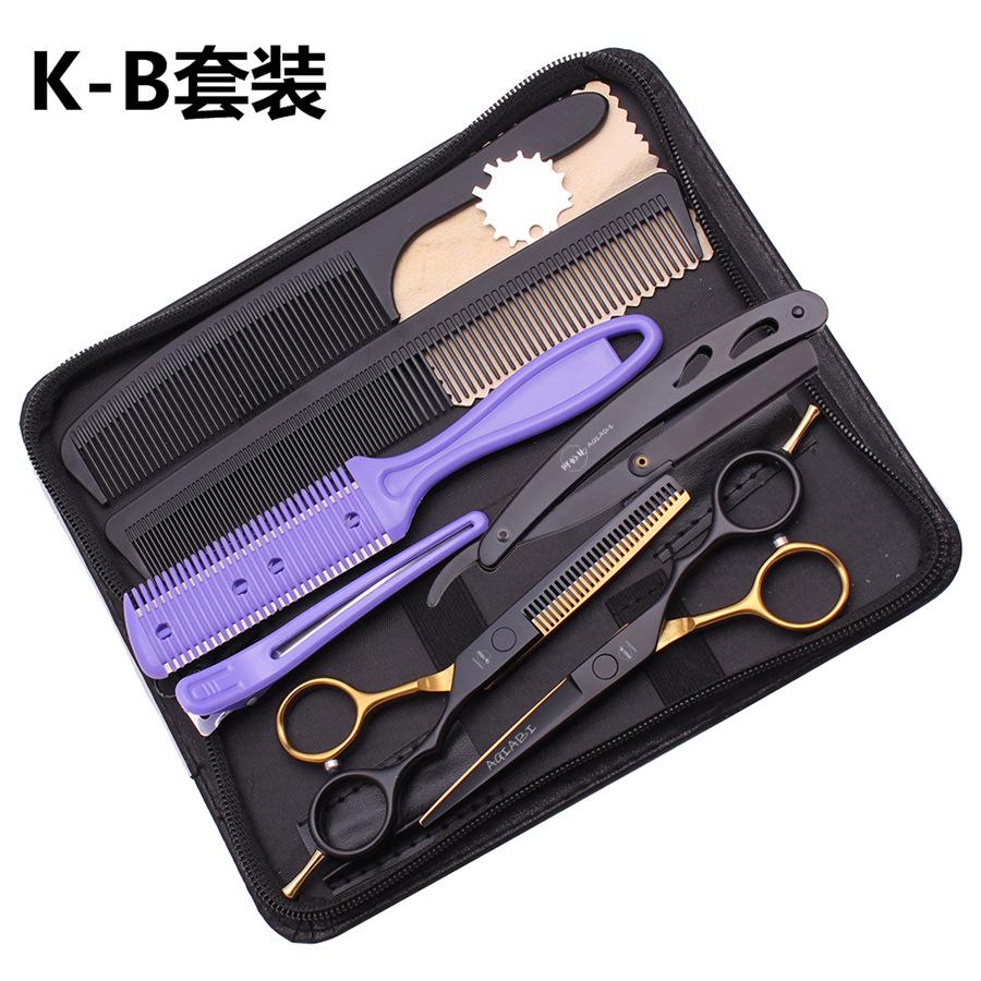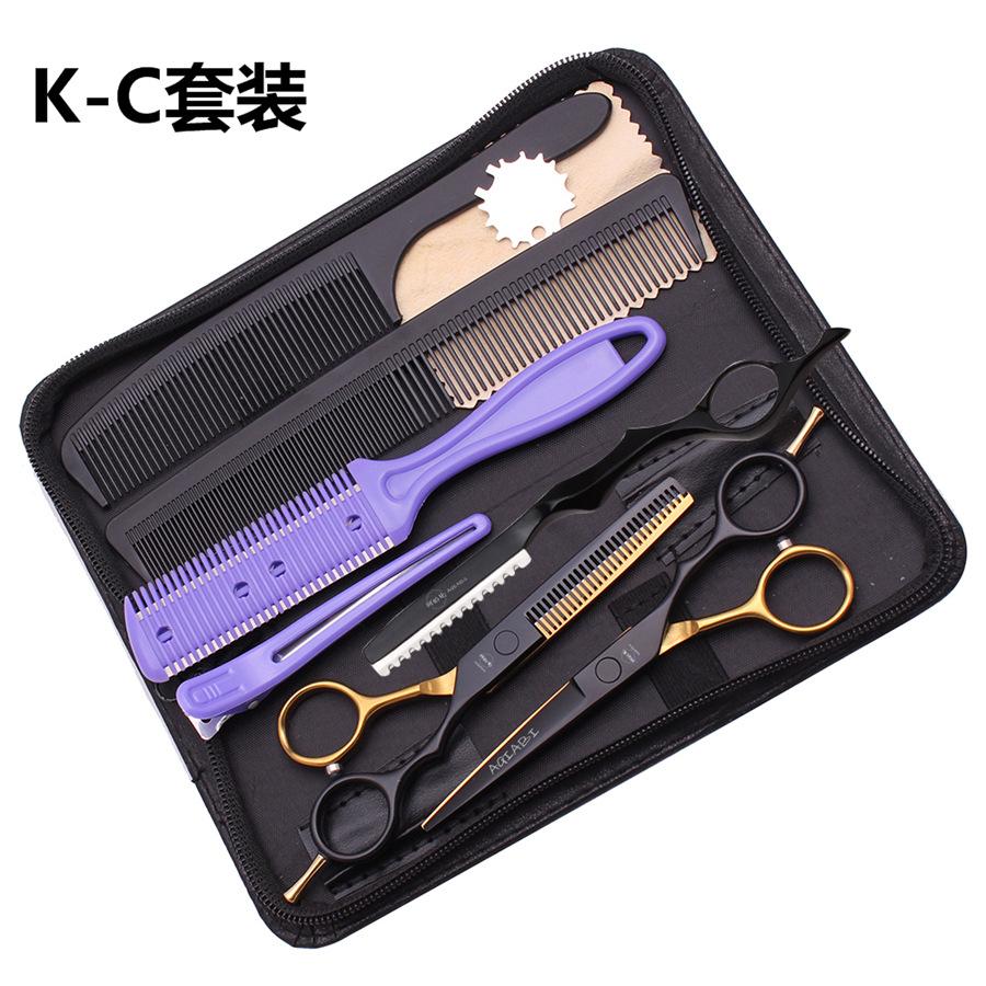 Achabi Tijeras Profesionales de Peluquería Negro Dorado 5.5/6.0" Cola Simple Forma A Flequillo Set de Herramientas de Peluquería
