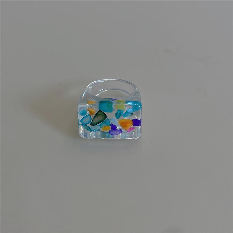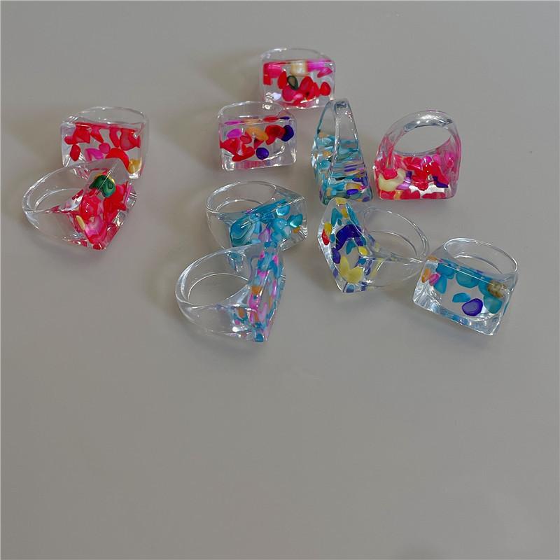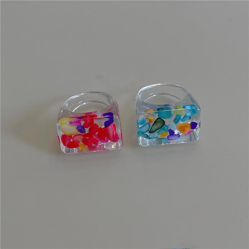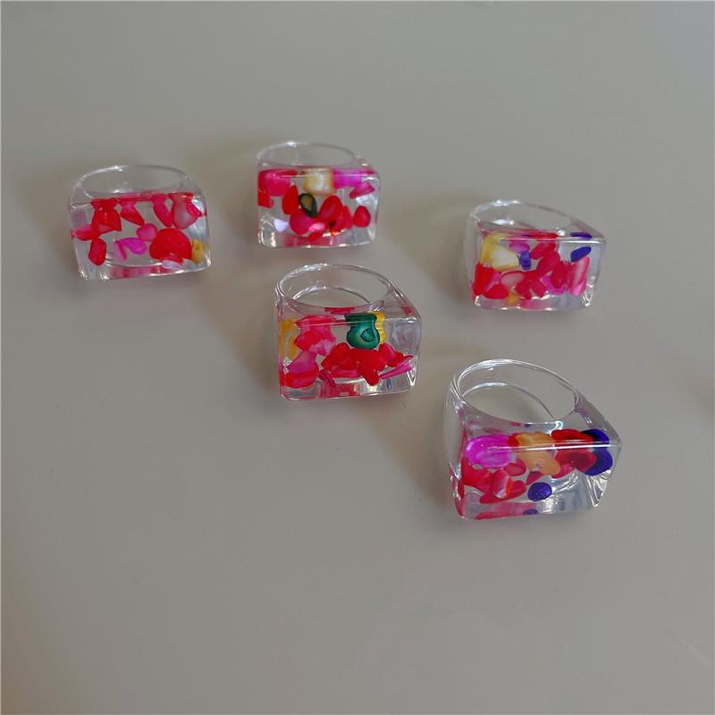 Anillo de resina con nombre de flor inaudito, estilo japonés y coreano, retro simple, incrustado, Dadongmen, anillo de resina Hyuna de color transfronterizo