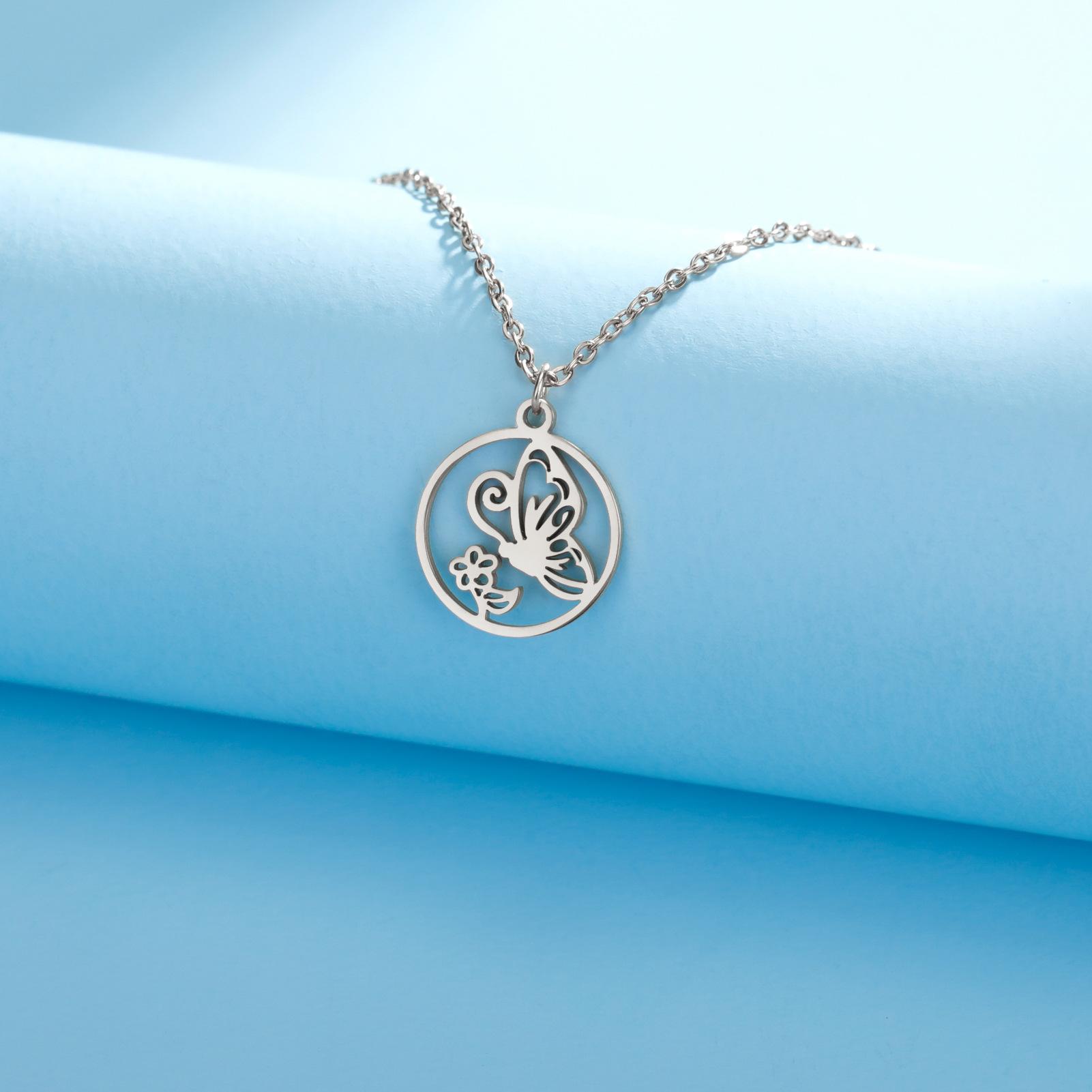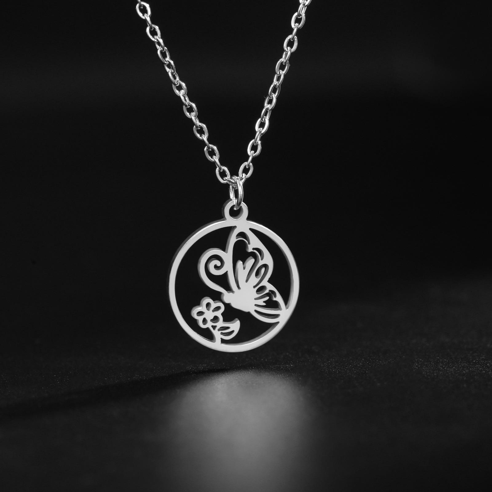 Colgante de mariposa estilo preppy coreano, cadena de clavícula, collar de acero inoxidable sencillo a la moda, regalo de joyería