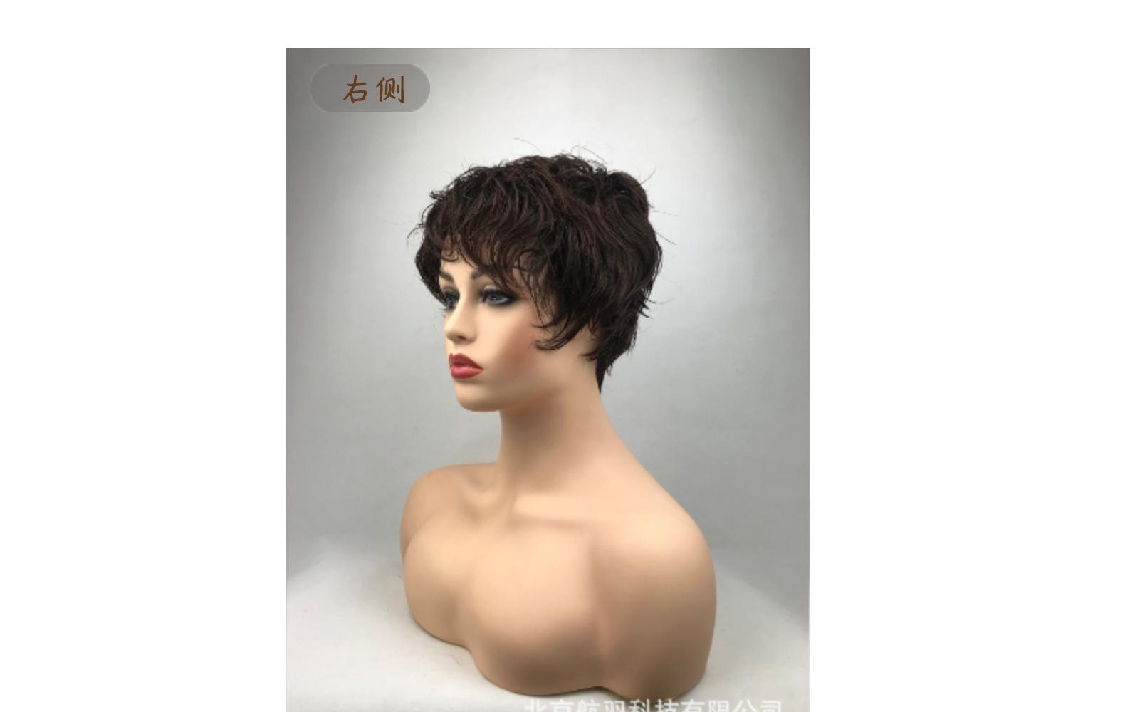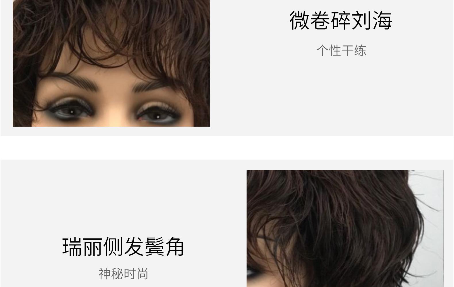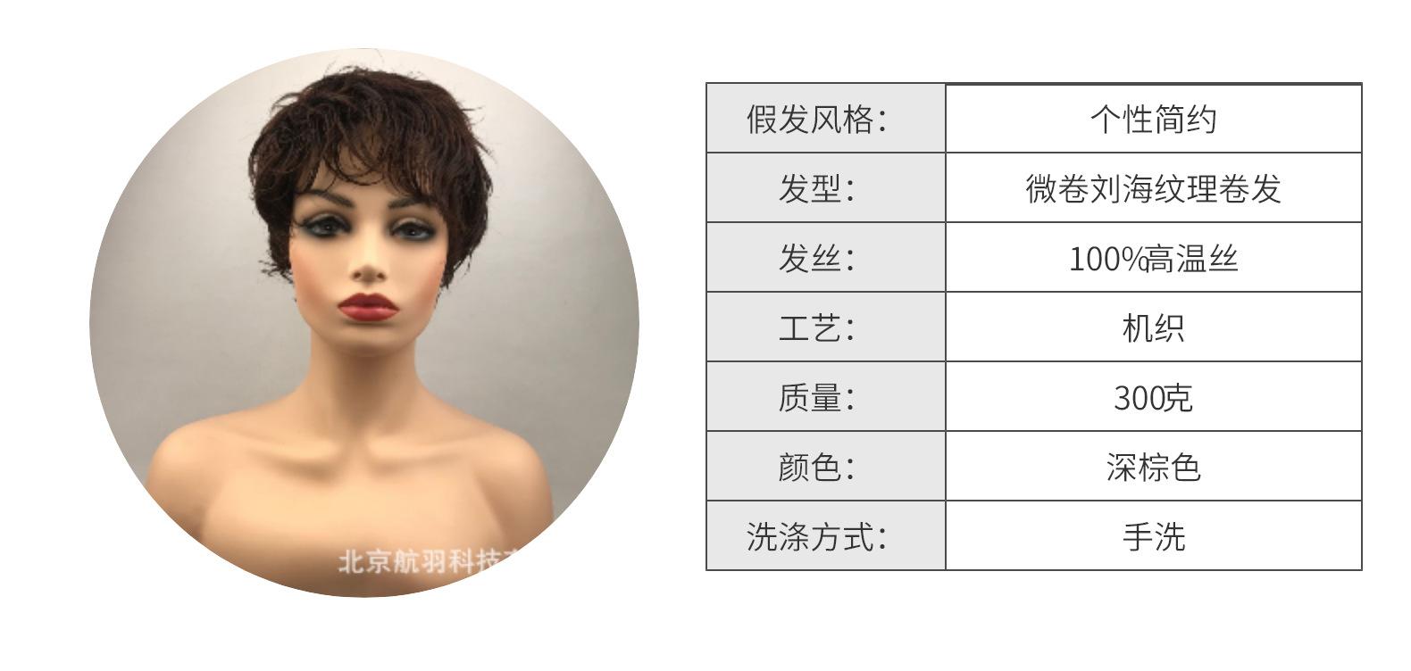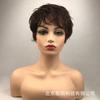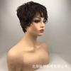 Peluca de mujer europea y americana transfronteriza con textura marrón, cabello corto y rizado microrizado, conjunto de peluca natural esponjosa, tocado de cabello corto de comercio exterior