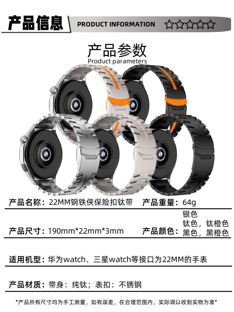 Compra Adecuado para Huawei Watch4 Pro Correa de reloj Iron Man Aleación de titanio 22mm Correa de metal de titanio puro Watch5 al por mayor en Joom.pro