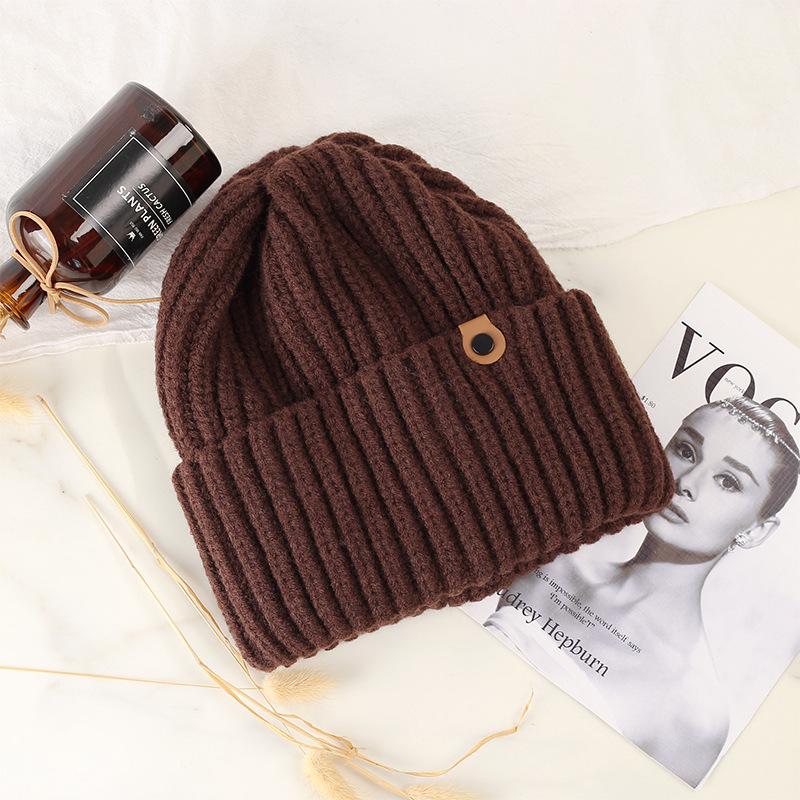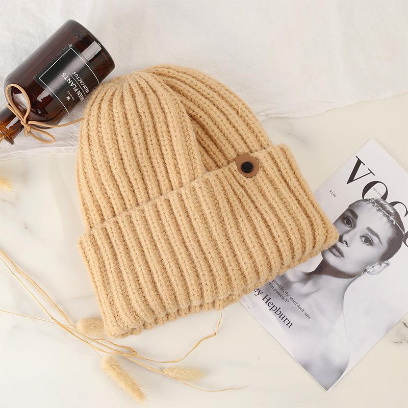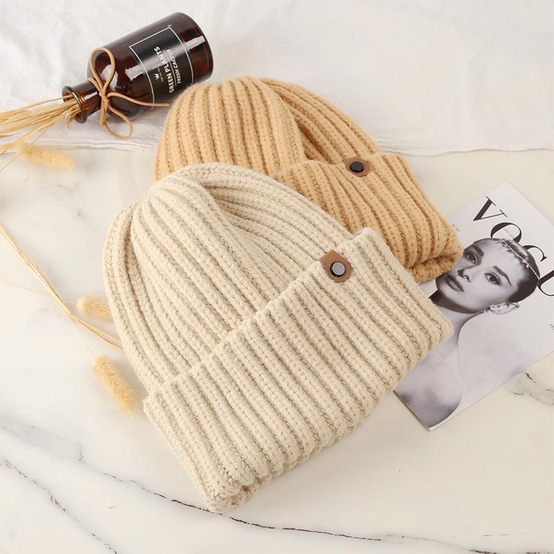 A- 489 black button knitted hat, A- 489 khaki button knitted hat, A- 489 brown button knitted hat, A- 489 beig...