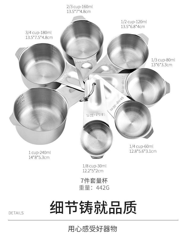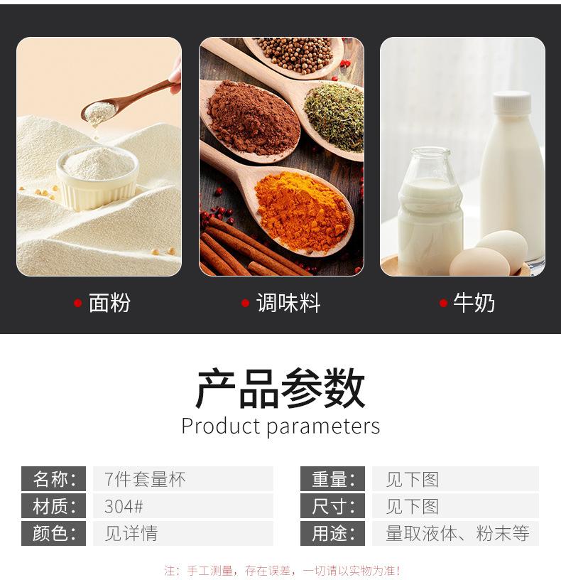 Especificaciones del producto: 7 piezasJuego de taza medidora: (Consulte el diagrama de especificaciones para obtener más detalles)