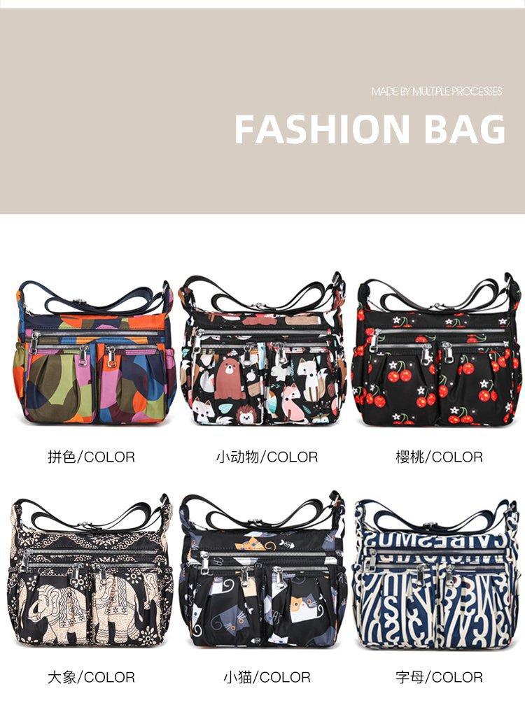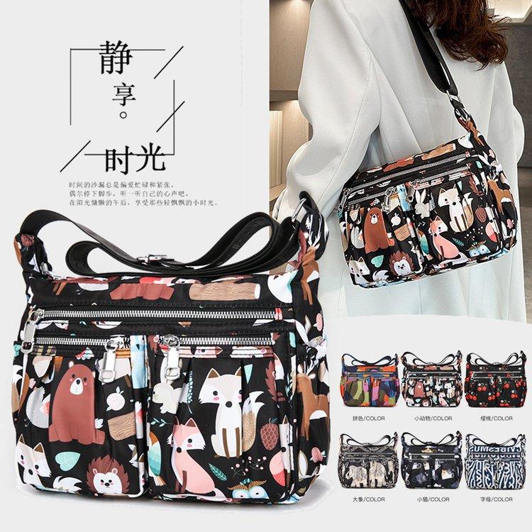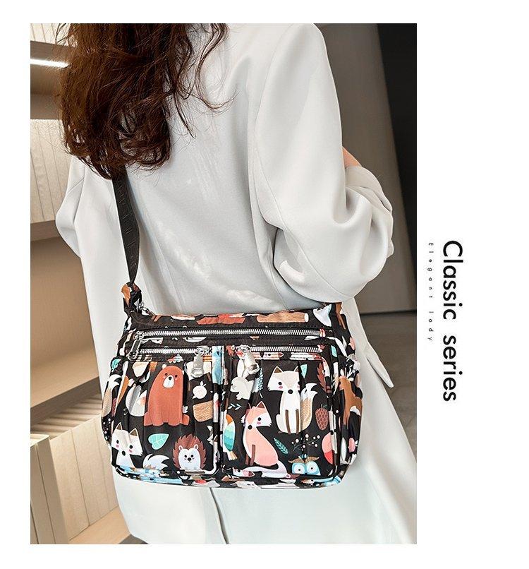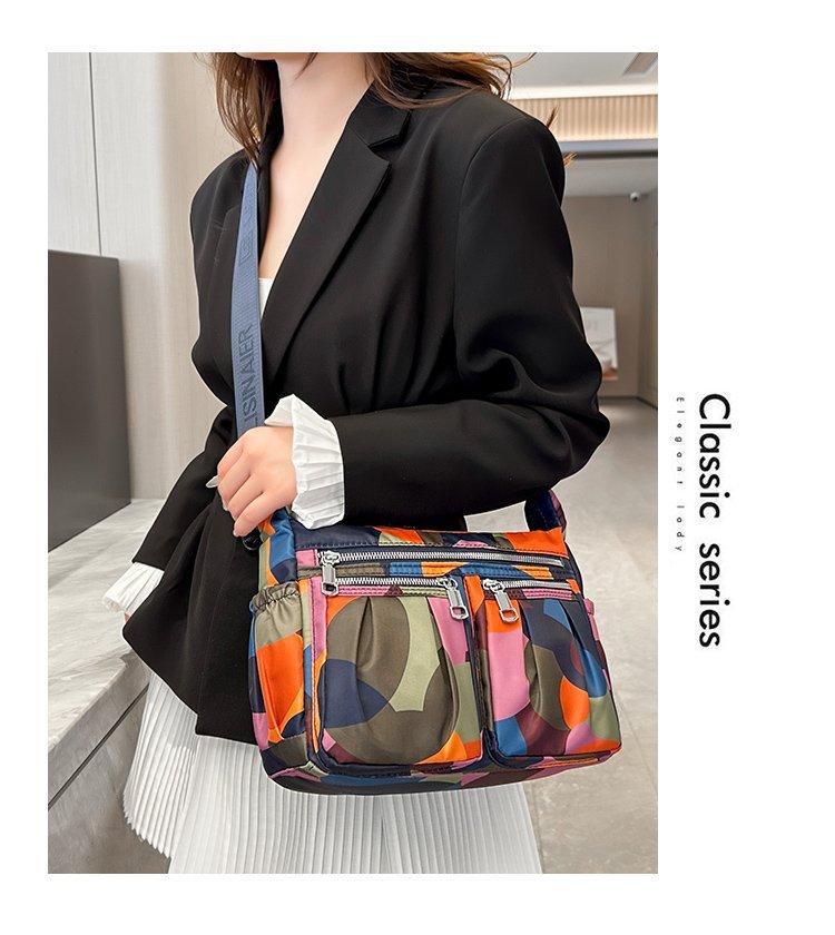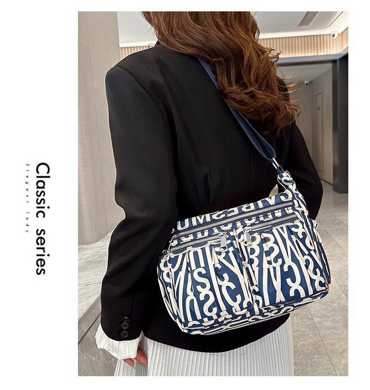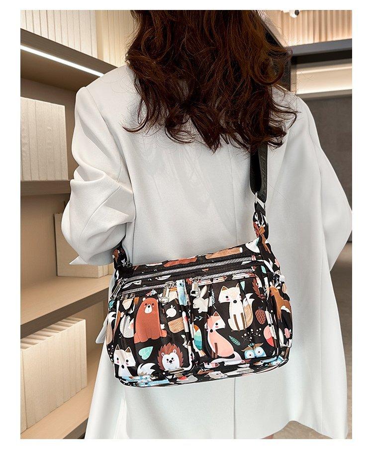 Nuevo bolso de tela de nailon con múltiples cremalleras, bolso de hombro para mujer de mediana edad, bolso cruzado, bolso para madre, bolso grande estampado de moda, bolso para mujer