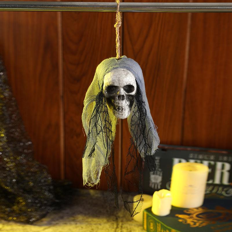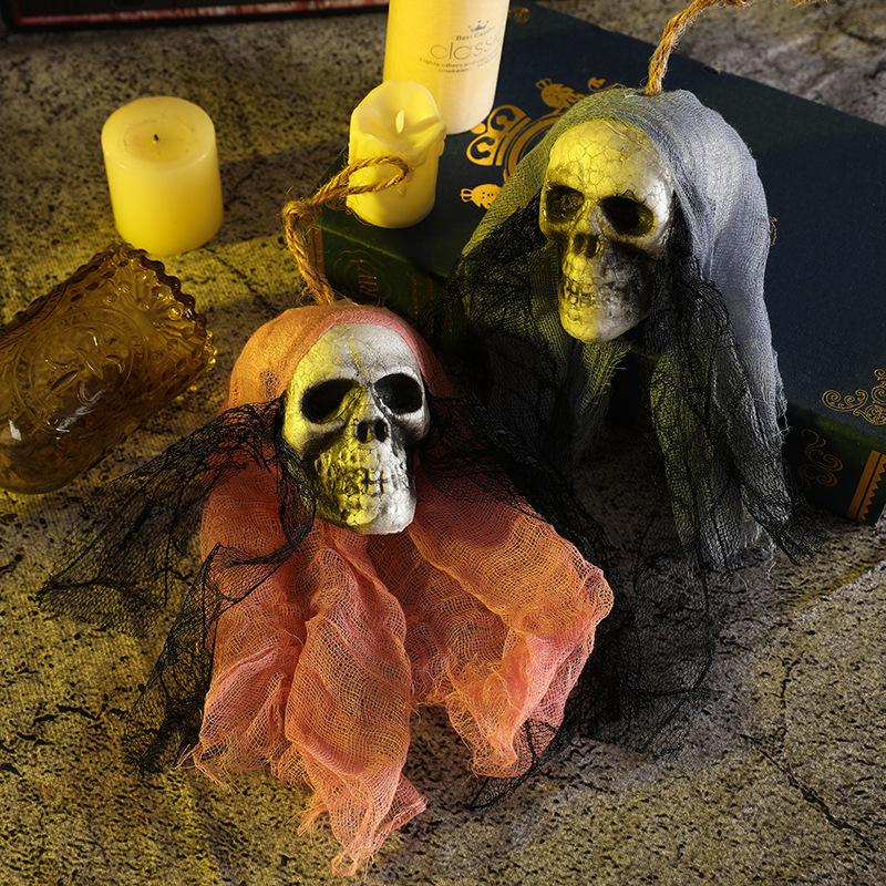 Pequeño fantasma colgante de Halloween, calavera de malla caliente transfronteriza, decoraciones para casas embrujadas, accesorios de diseño de sitio, fantasma colgante de terror