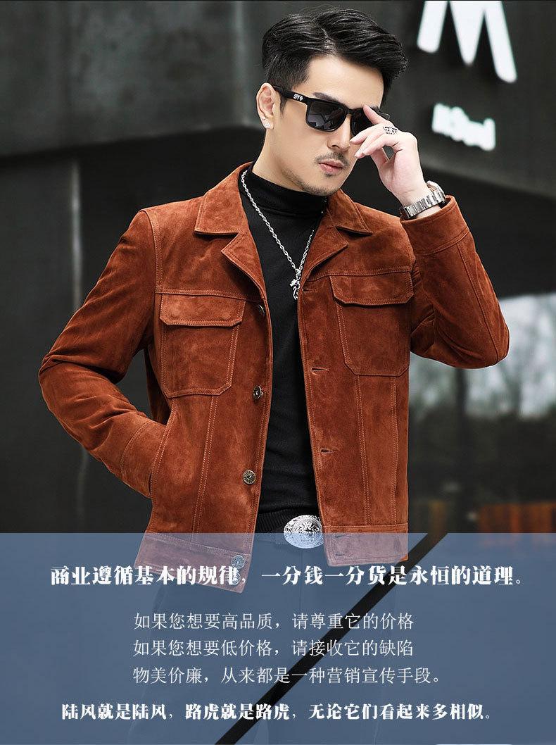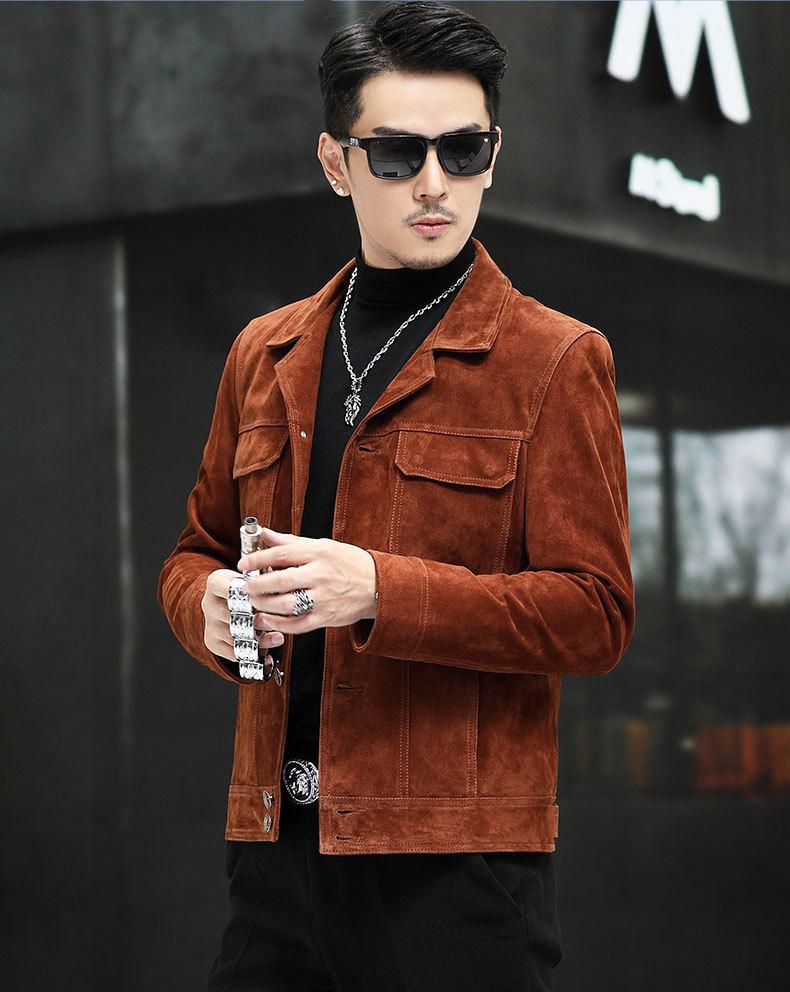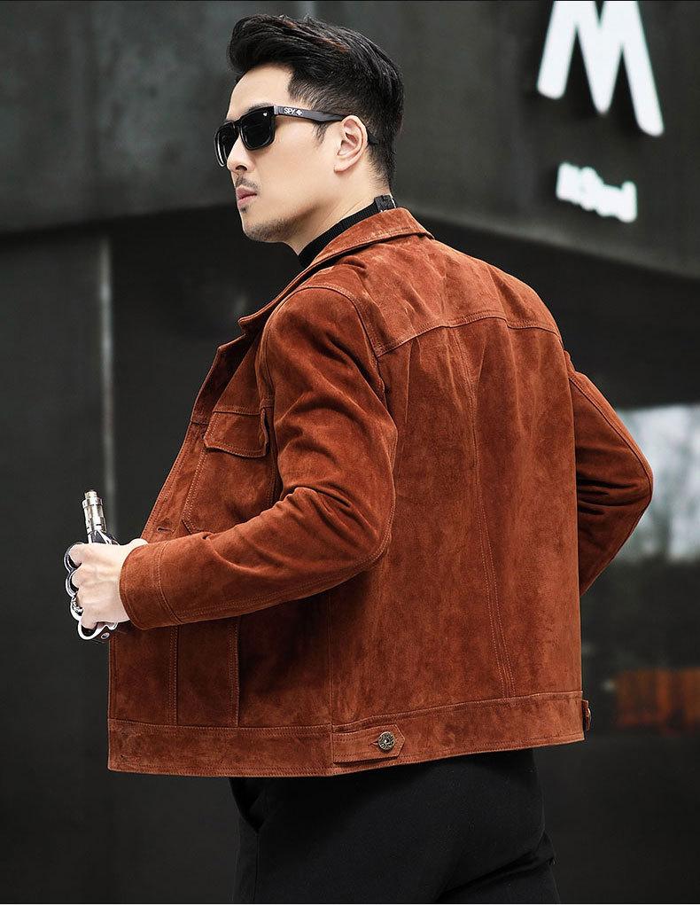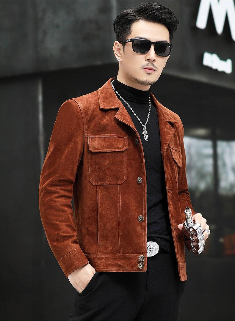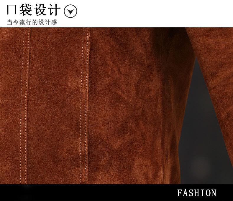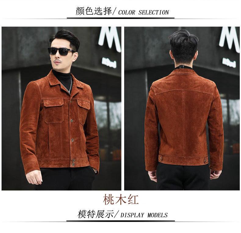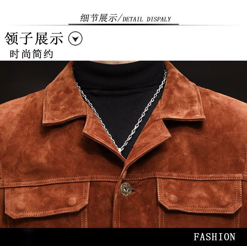 Nueva chaqueta corta de cuero de gamuza con solapa para hombre, moda de otoño, informal, juvenil, de un solo pecho