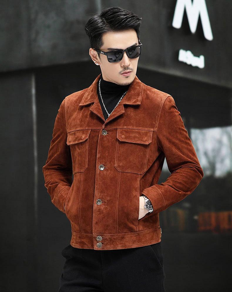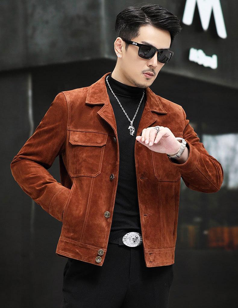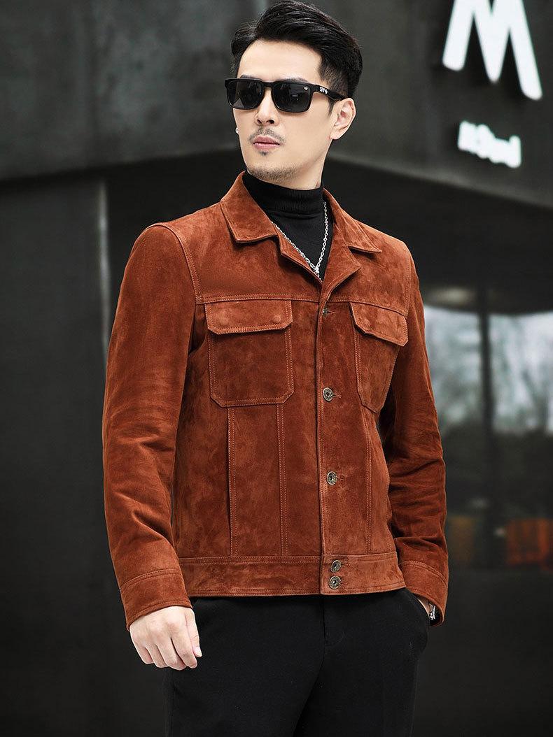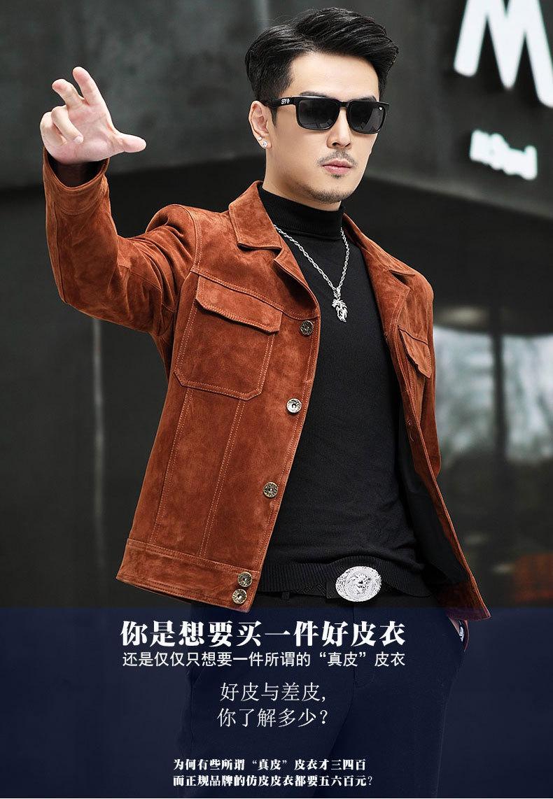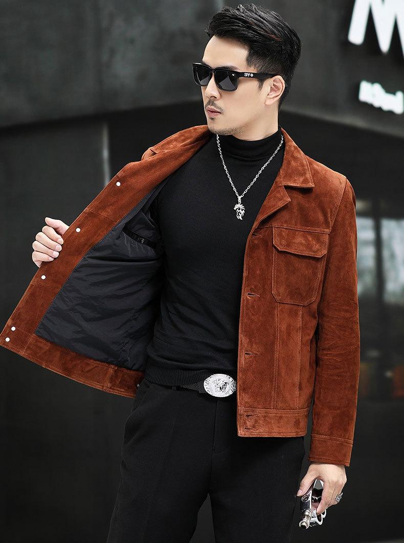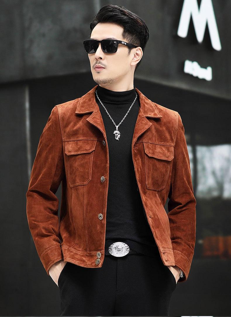 Nueva chaqueta corta de cuero de gamuza con solapa para hombre, moda de otoño, informal, juvenil, de un solo pecho