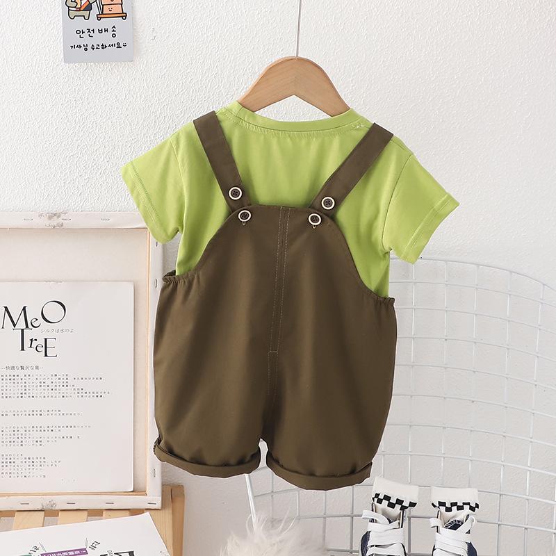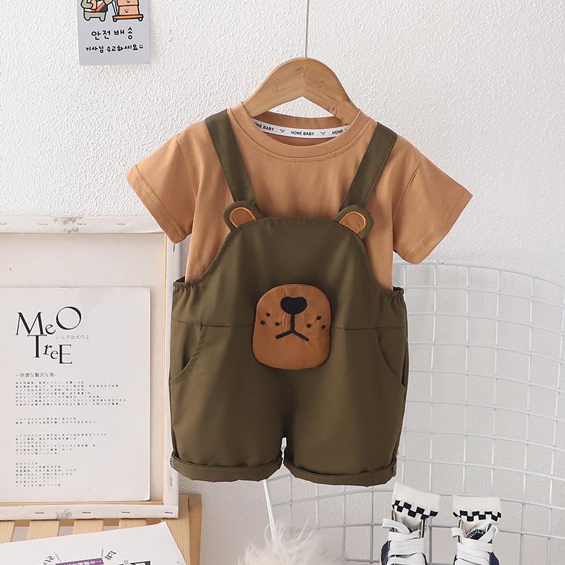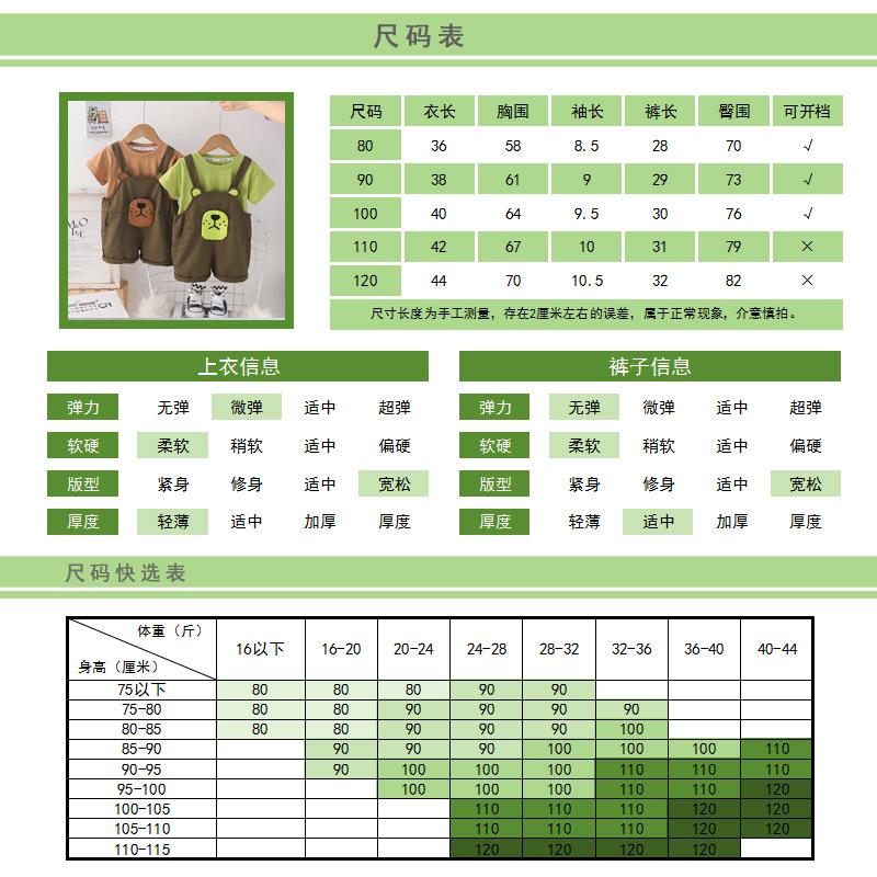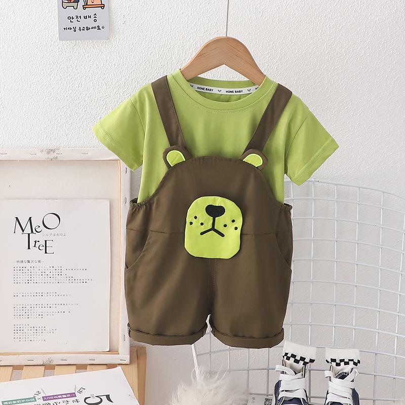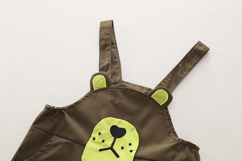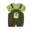 Short-sleeved bear-head suspenders suit green, Short-sleeved bear-head suspenders suit brown