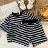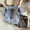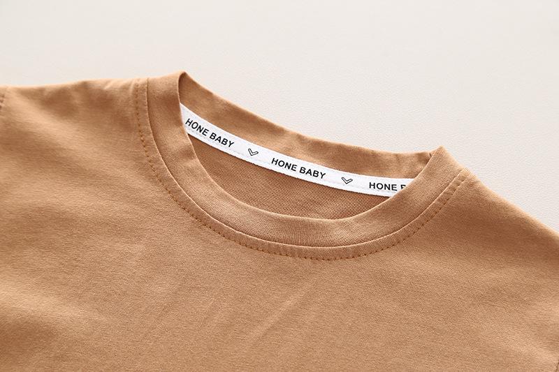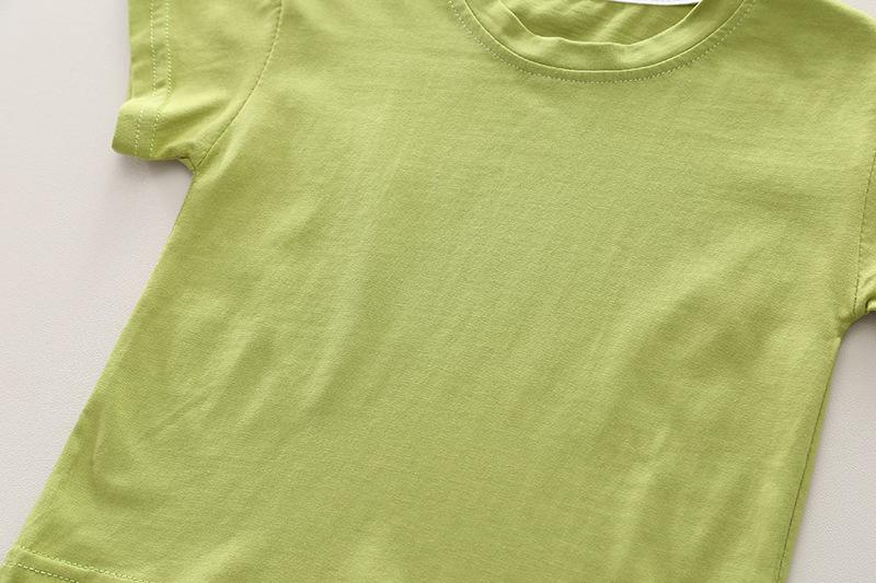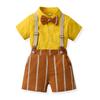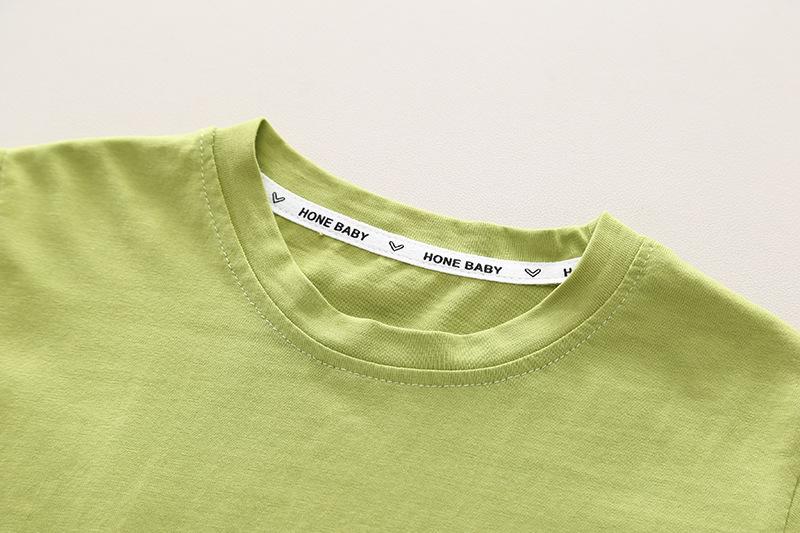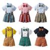 Traje de verano estilo coreano para niños, pantalones con tirantes, camiseta de color en contraste, tirantes de oso, traje de manga corta para niños.