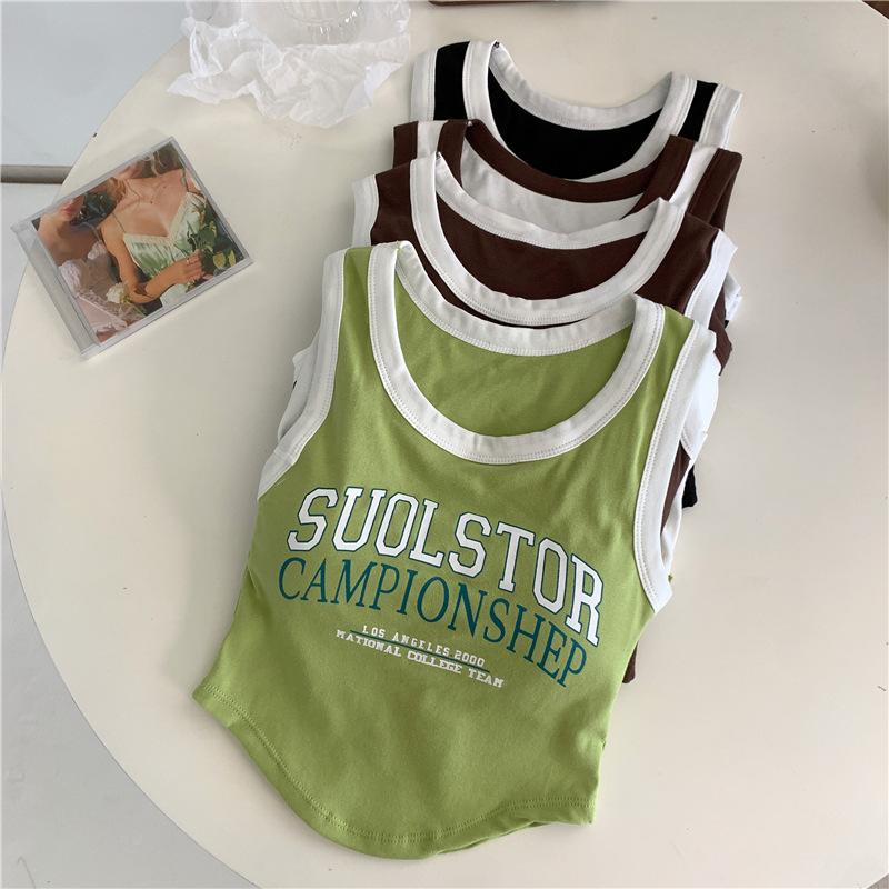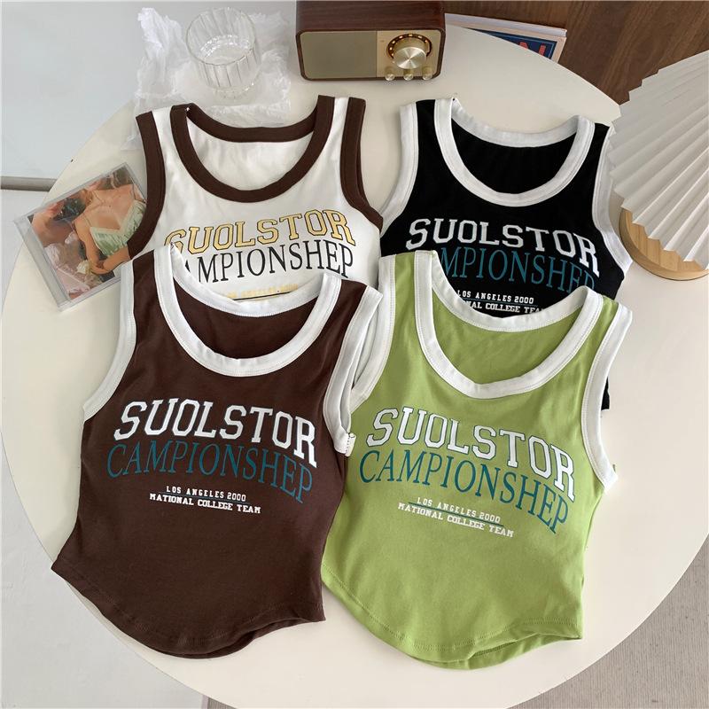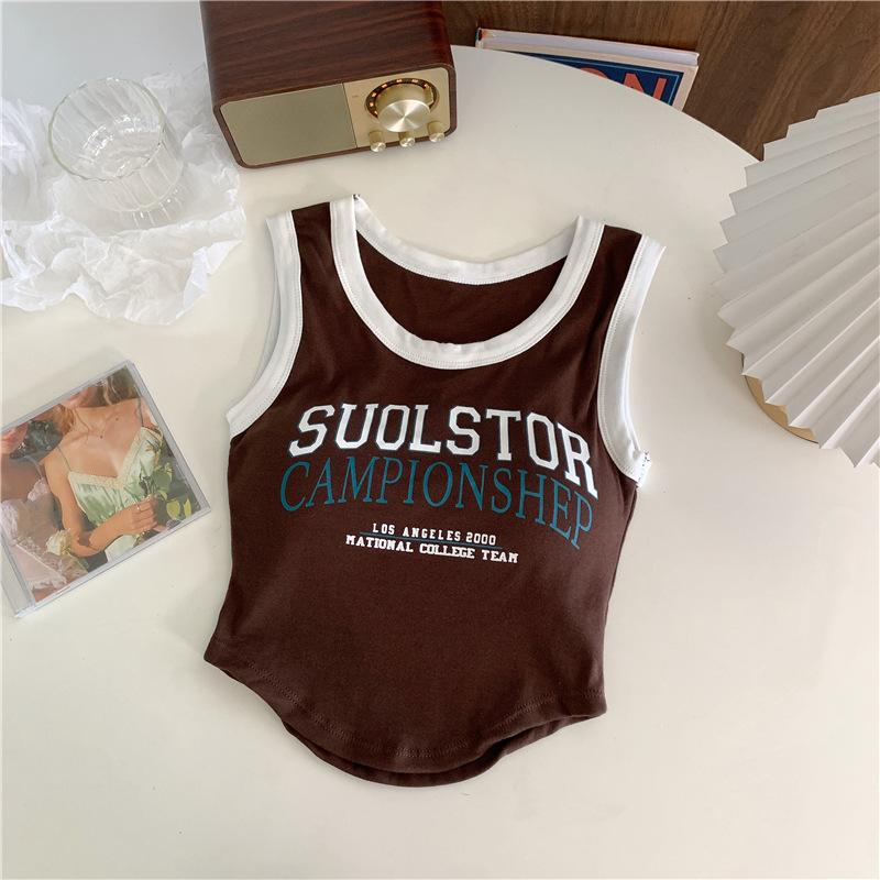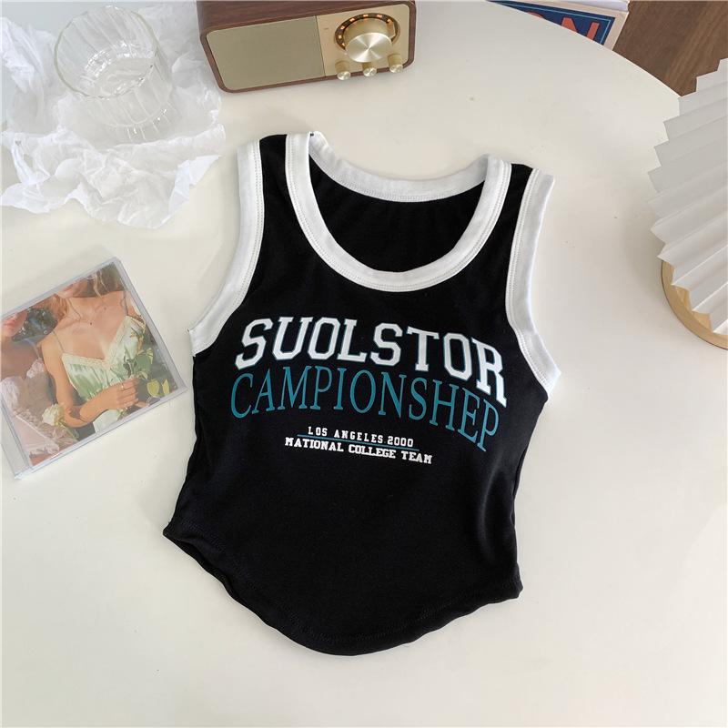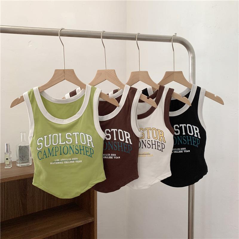 Compra Chaleco High Street de Color Contrastante para Mujer 2024 Verano Ropa Exterior e Interior Ajustado con Almohadilla en el Pecho Estampado de Letras Corto Pequeño Sling para Mujer al por mayor en Joom.pro