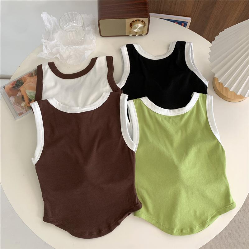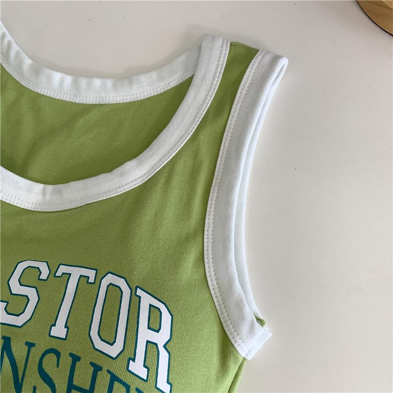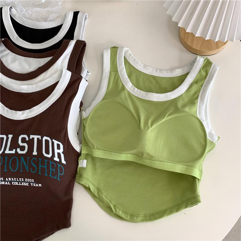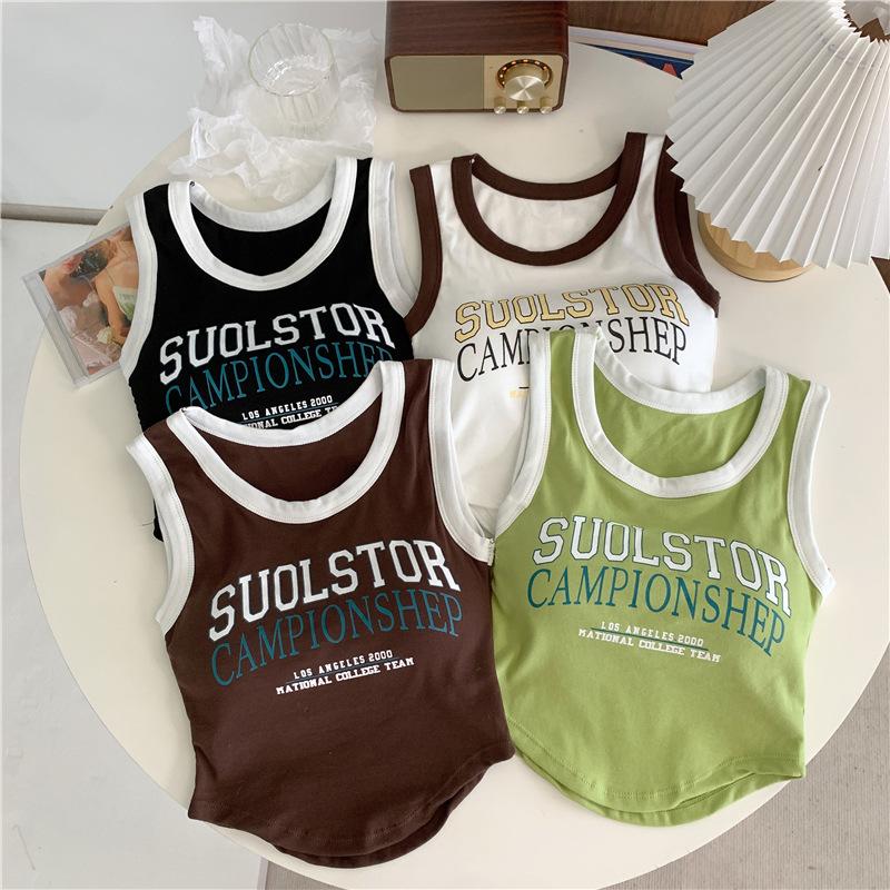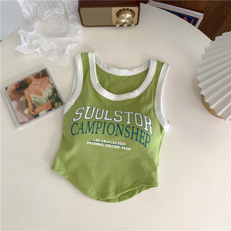 Compra Chaleco High Street de Color Contrastante para Mujer 2024 Verano Ropa Exterior e Interior Ajustado con Almohadilla en el Pecho Estampado de Letras Corto Pequeño Sling para Mujer al por mayor en Joom.pro
