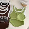 Chaleco High Street de Color Contrastante para Mujer 2024 Verano Ropa Exterior e Interior Ajustado con Almohadilla en el Pecho Estampado de Letras Corto Pequeño Sling para Mujer