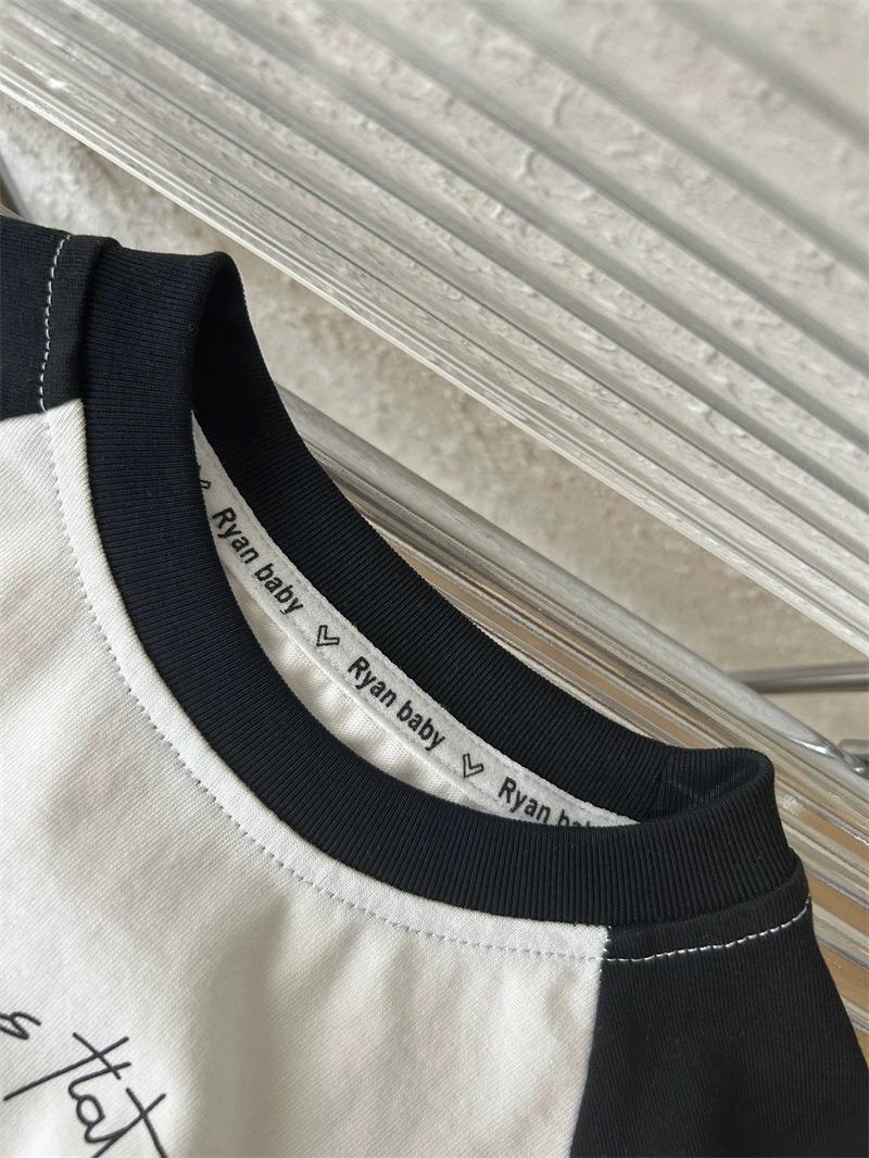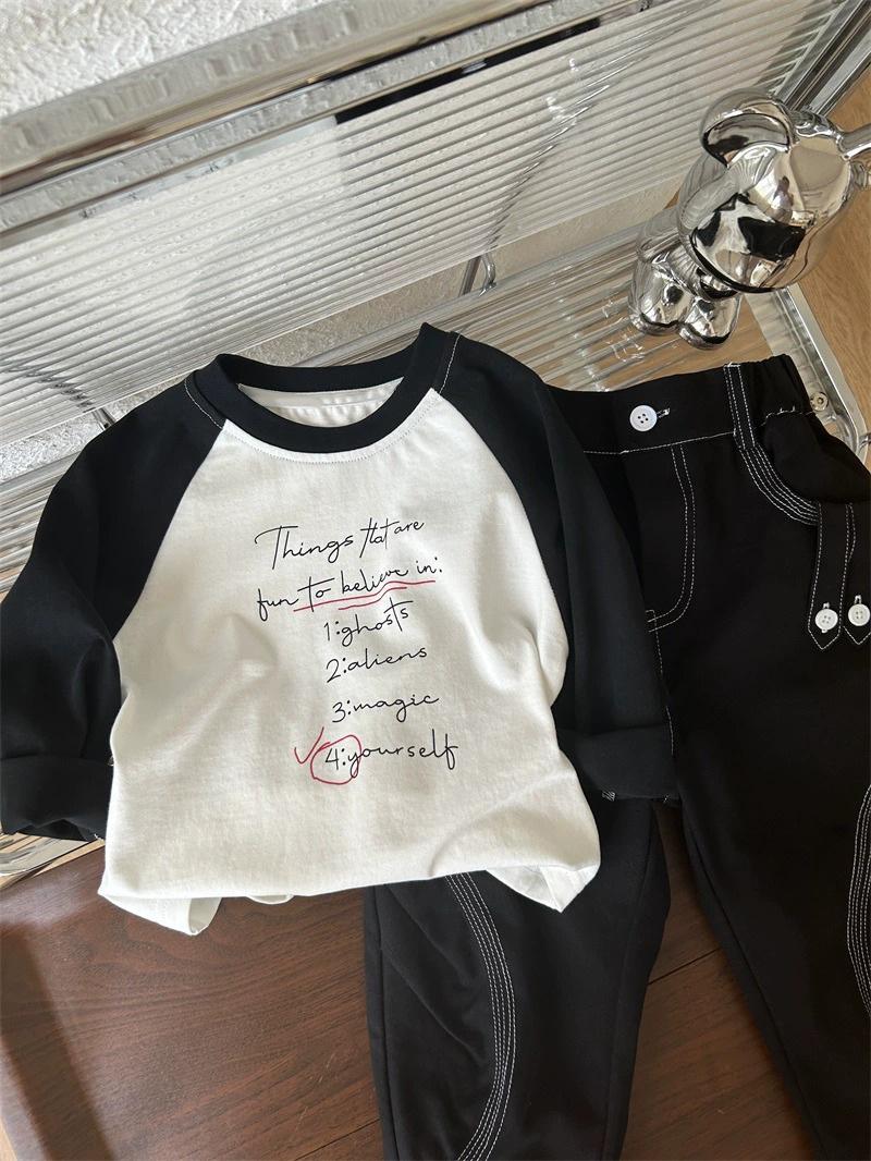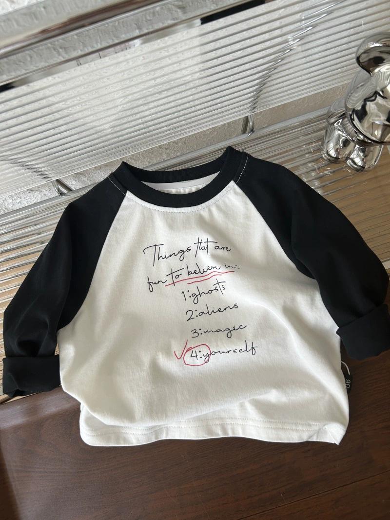 Camiseta de Algodón de Manga Larga para Niño Primavera Nueva para Niños Pequeños y Medianos Top con Estampado de Letras a Bloques de Color Ropa Infantil de Primavera y Otoño para Bebé