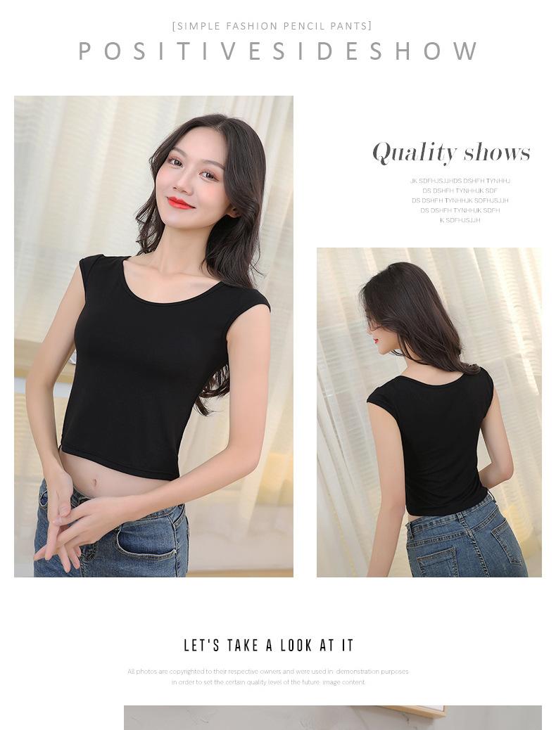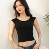Compra Camiseta de Diseño Otoñal para Mujer con Cuello Redondo y Manga Corta, Estilo Crop Ajustado de Cintura Alta y Mangas Cortas con Volantes al por mayor en Joom.pro