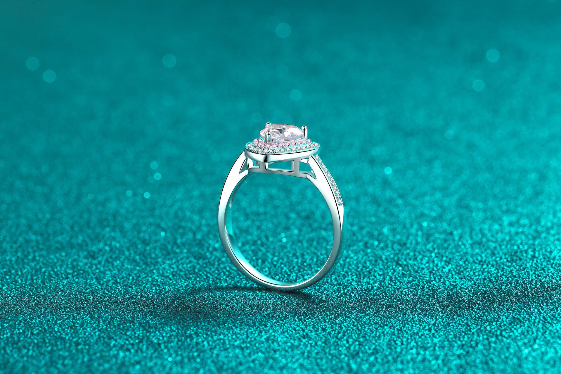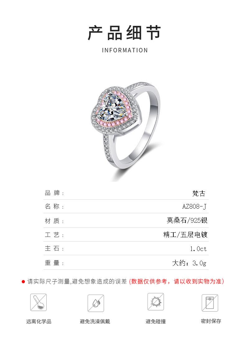 Anillo femenino de moissanita de 1 quilate con incrustaciones de corazón y circonita rosa transfronteriza, popular anillo de plata esterlina 925.