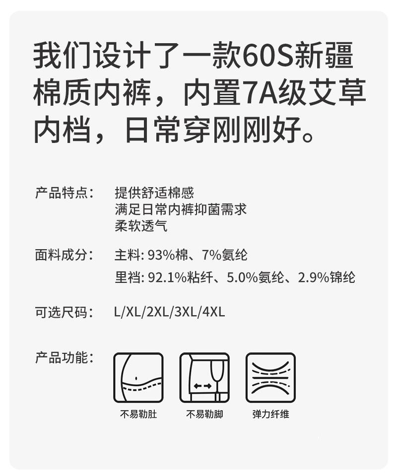 Ropa Interior Premium para Hombre Algodón de Xinjiang 60 Hilos Otoño Ropa Interior para Hombre de Algodón Puro con Capa Interna Antibacteriana de Ajenjo Calzoncillos Bóxer de Algodón Puro