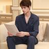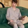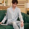 Pijamas finos de seda para hombre, de manga larga, para primavera, verano y otoño, informales, para el hogar, cárdigan, traje de seda helada