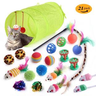 | Juego de juguetes para gatos de Amazon, listo para usar, 21 piezas, túnel de tres vías, múltiples combinaciones, divertido juego de juguetes para gatos. |