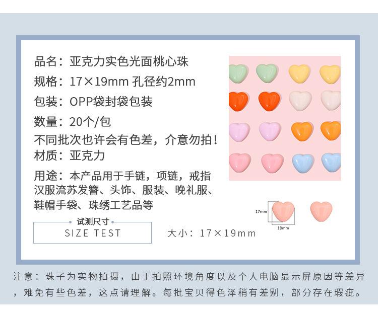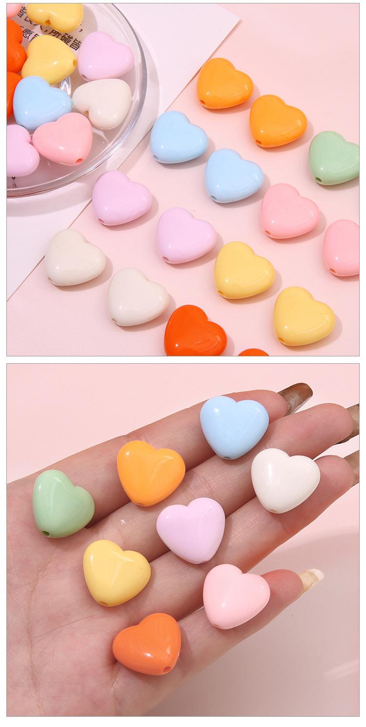 Cuentas de corazón de melocotón brillante de acrílico Macaron, joyería hecha a mano, pulsera tejida, collar, accesorios, material
