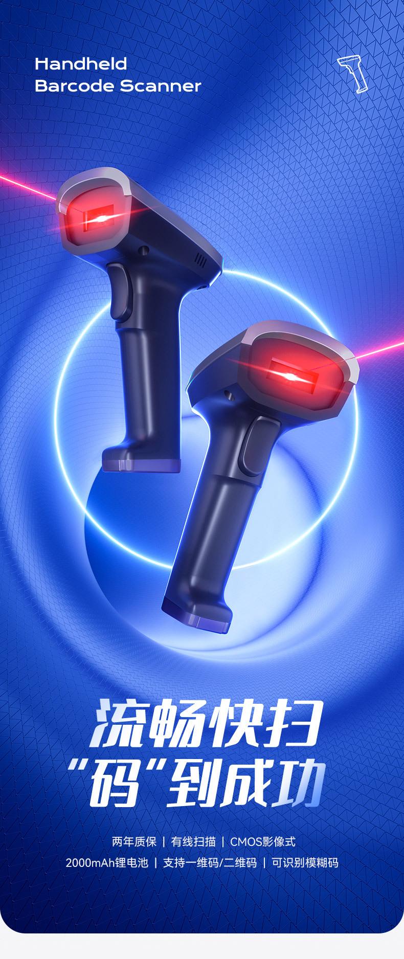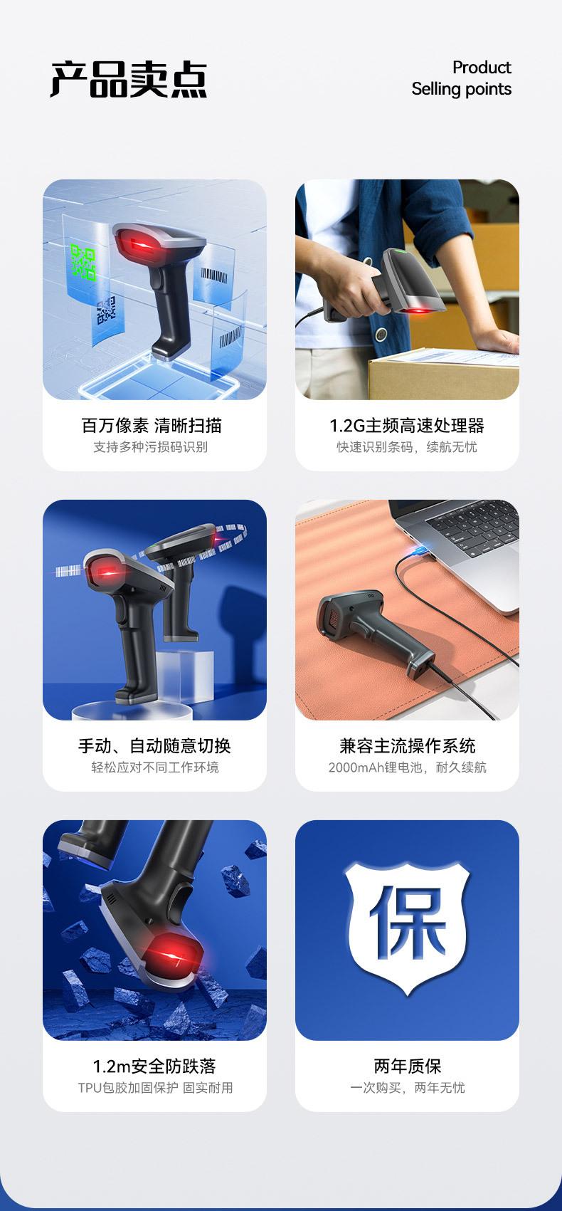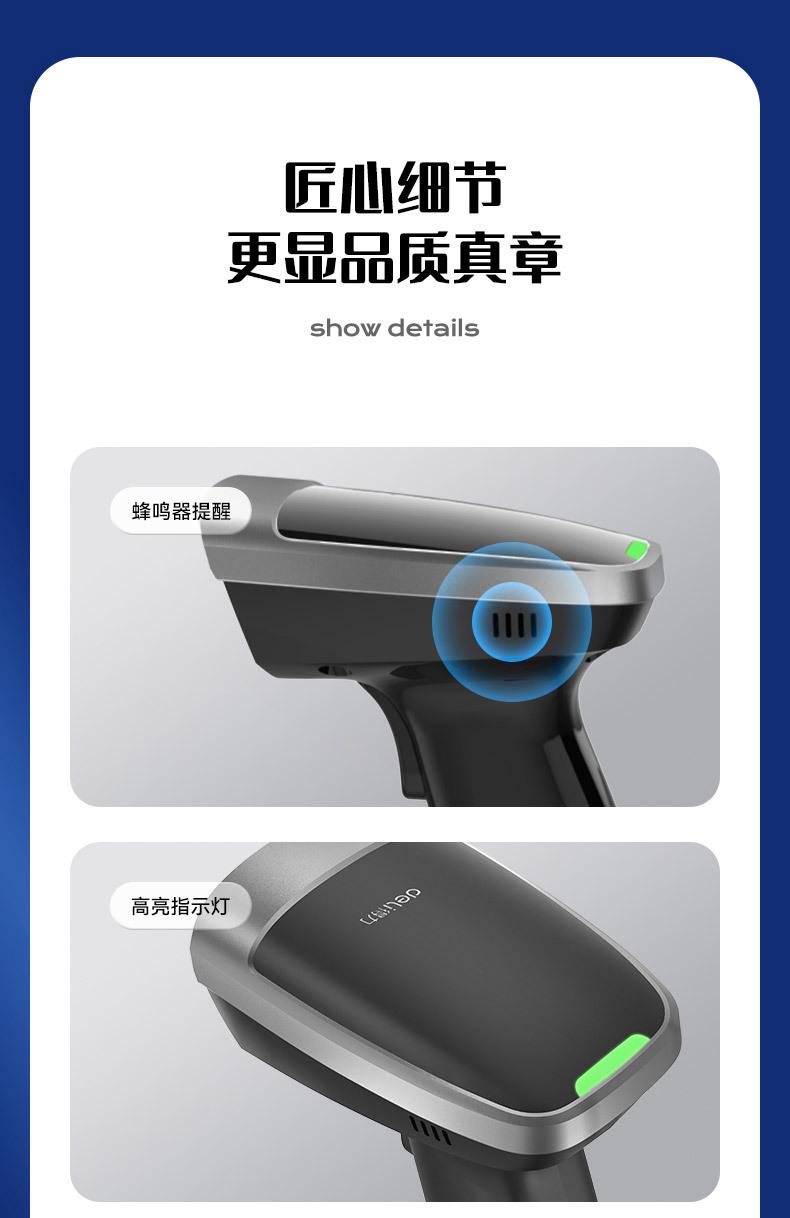 Pistola de escaneo de código de barras Deli AA308, caja registradora inalámbrica para supermercado, escáner exprés con código bidimensional y Bluetooth