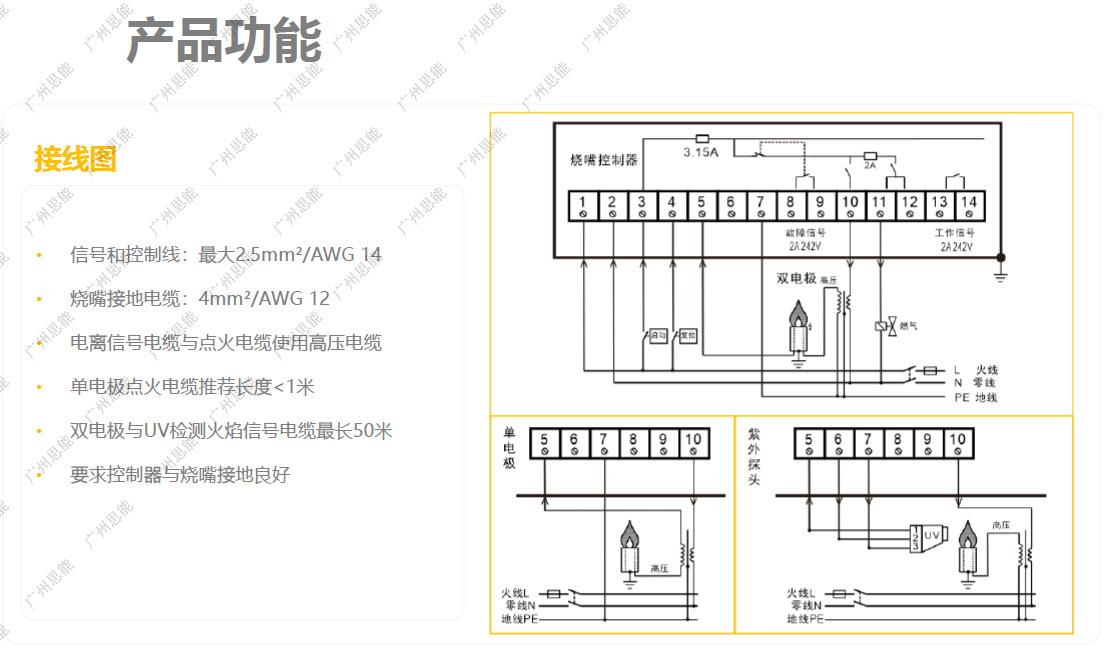◆Controlador de programa:SIEMENS(Siemens):LOA24、LOA44、LMO14、LMO24、LMO44、LAL1.…、LGB21、LGB22、LMG21、LMG22、LEL1.…、LGK16、LAE1、LFE1、LEC1、LGI16等;BRAHMA(Braima):QR3/B, QR1/Z, FR1, FR2, F22, G22, GF2, GF3, G33, QR1, QR2, QR3, MF2, M300, VM42, VM41, BV3, VE3, SR3, etc.RIELLO(Riyado):RMG88.62A2, RMO88.620A2, 508SE, 525SE/3, 552SE, LMO88.530A2, RMO503SE, 552SE, RBO522SE, 530SE;HONEYWELL(Honeywell):EC7800/RM7800, R4343E1014, R4343D1017, RA890G1245, RA890F1304, DLG976, TFI812.2, MMI813.1, MMI962.1, etc.;DANFOSS(Danfoss):BH064, BH064A, LOA44, BH064.1, etc.
