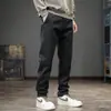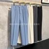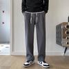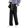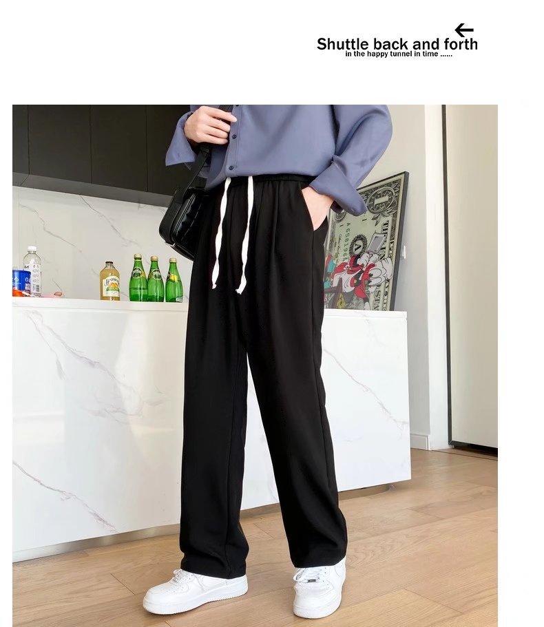 Pantalones rectos negros de primavera y otoño para hombre, pantalones de traje con caída, cordón ajustable, pata ancha, para trapear, moda coreana casual holgada