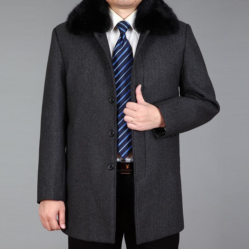 Compra Novo casaco de lapela para homens de meia-idade e idosos, casaco de comprimento médio para pais, forrado de lã al por mayor en Joom.pro