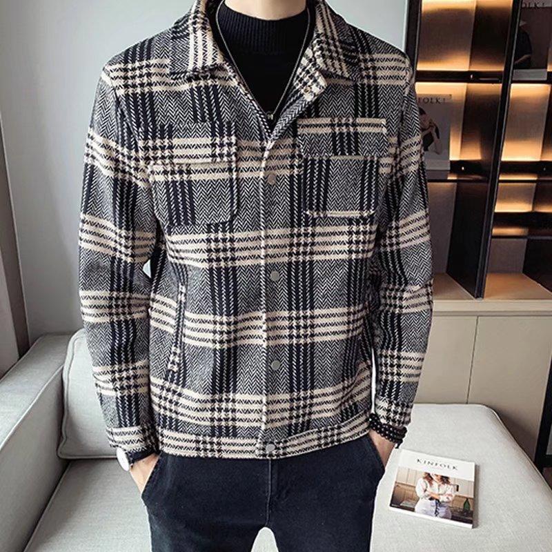 Chaqueta casual de trabajo para hombre primavera y otoño estilo coreano moderna holgada guapa chaqueta de cuadros británica para hombre