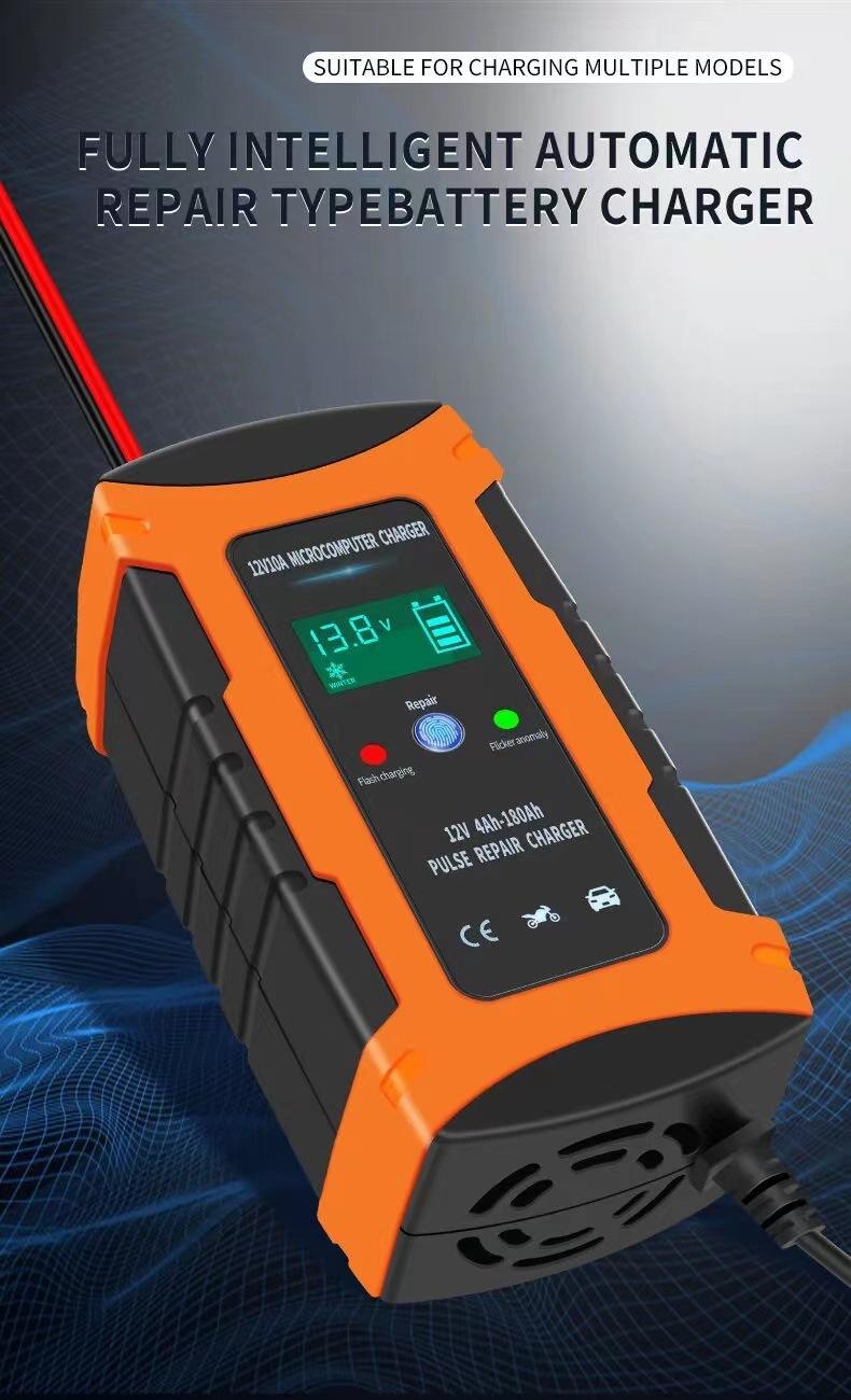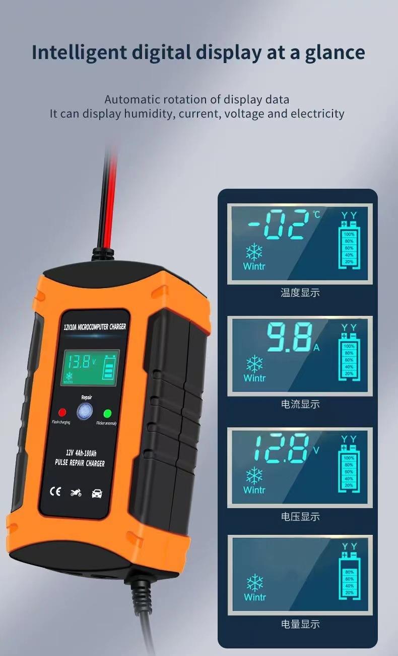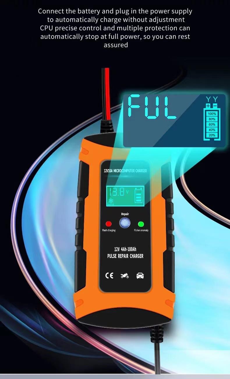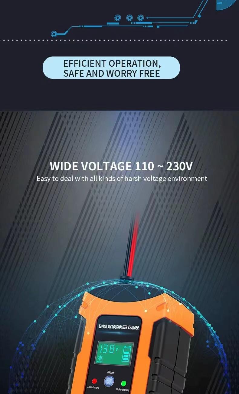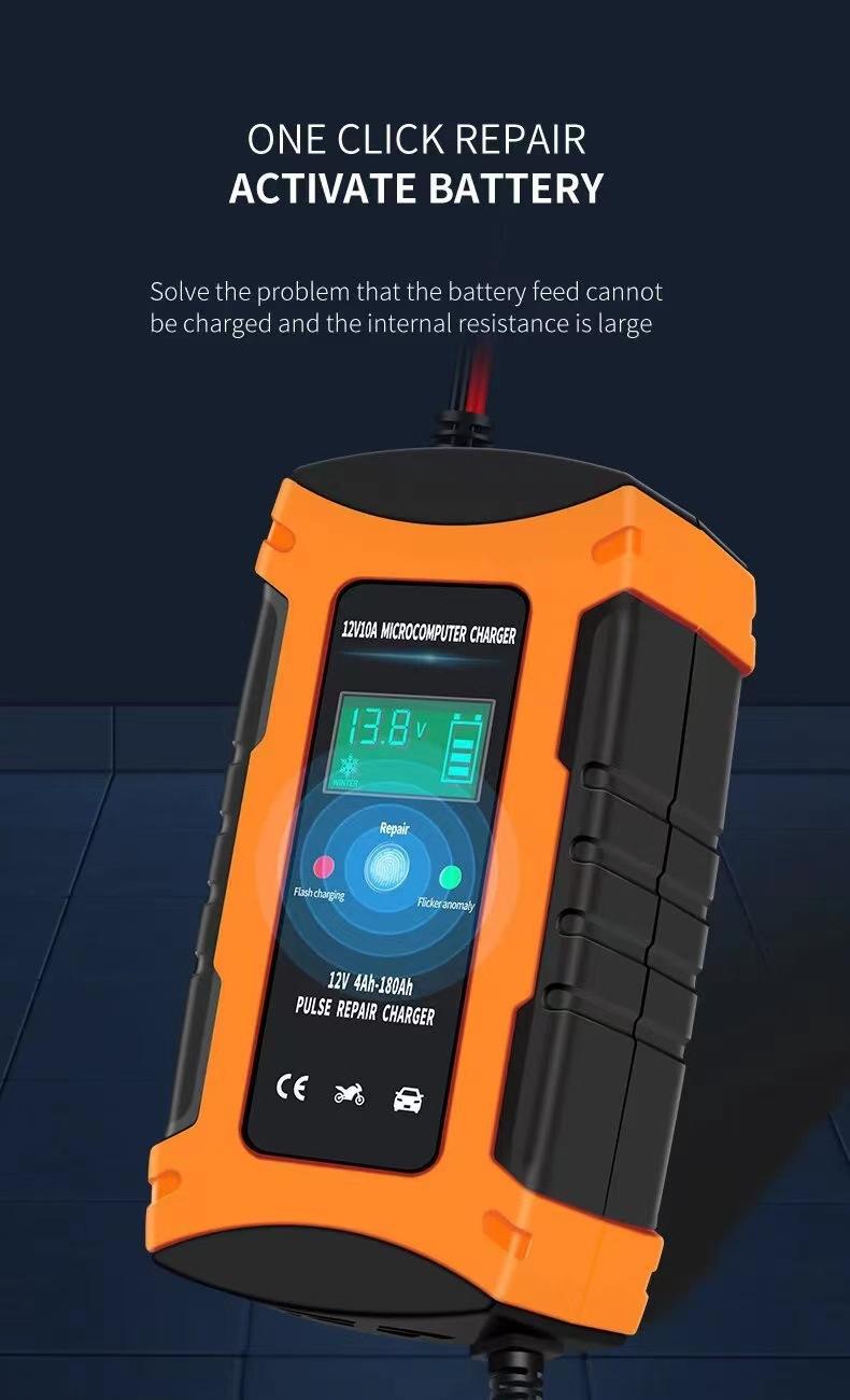 Cargador de Batería de Coche y Motocicleta Transfronterizo 12V10A Cargador de Batería Agm Start-Stop Reparación Inteligente por Pulsos