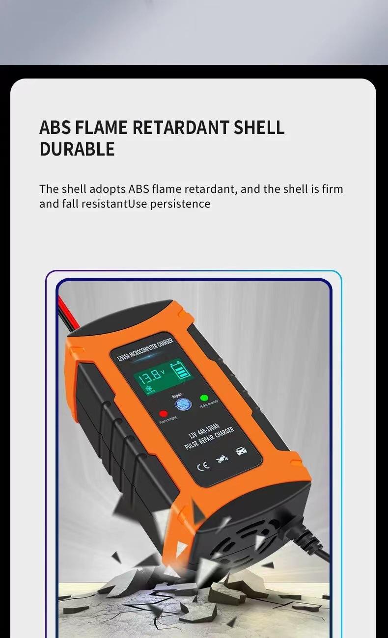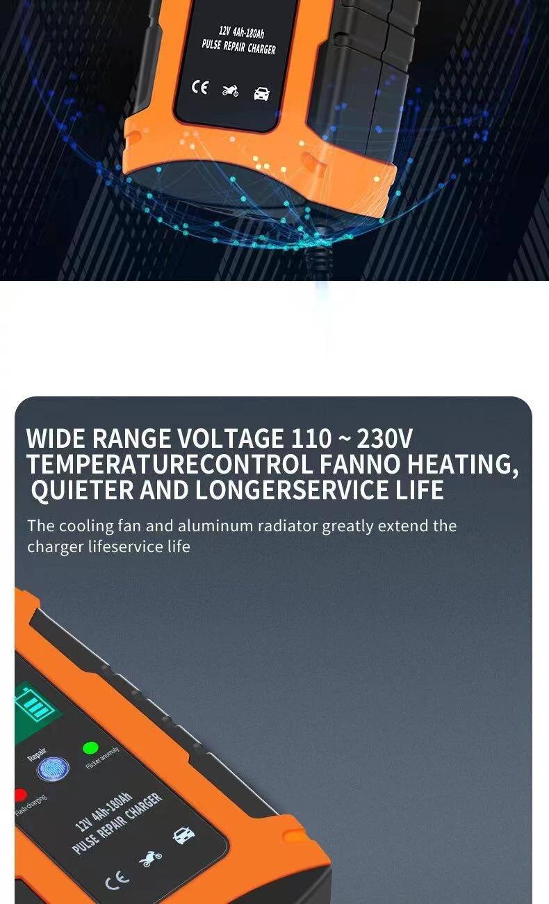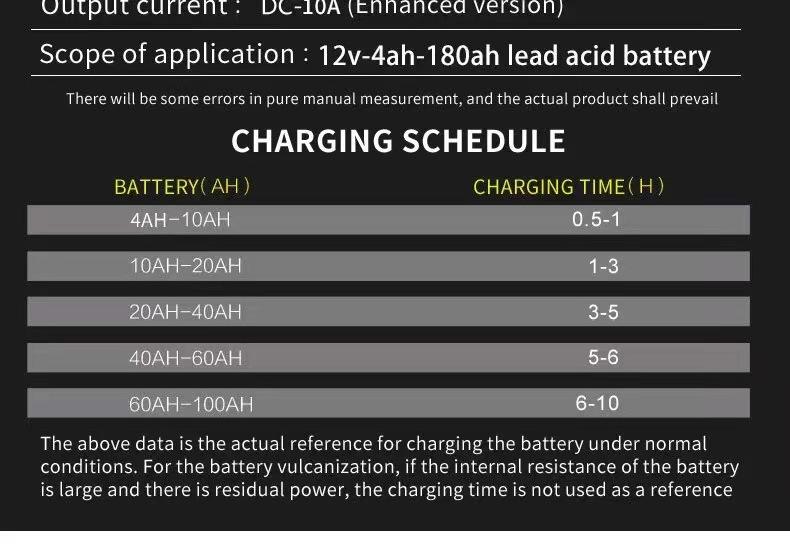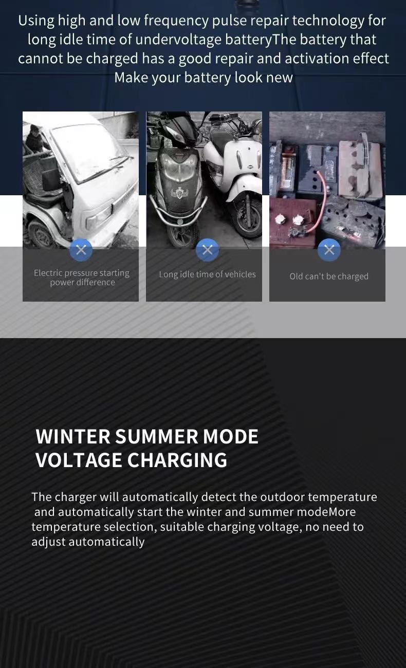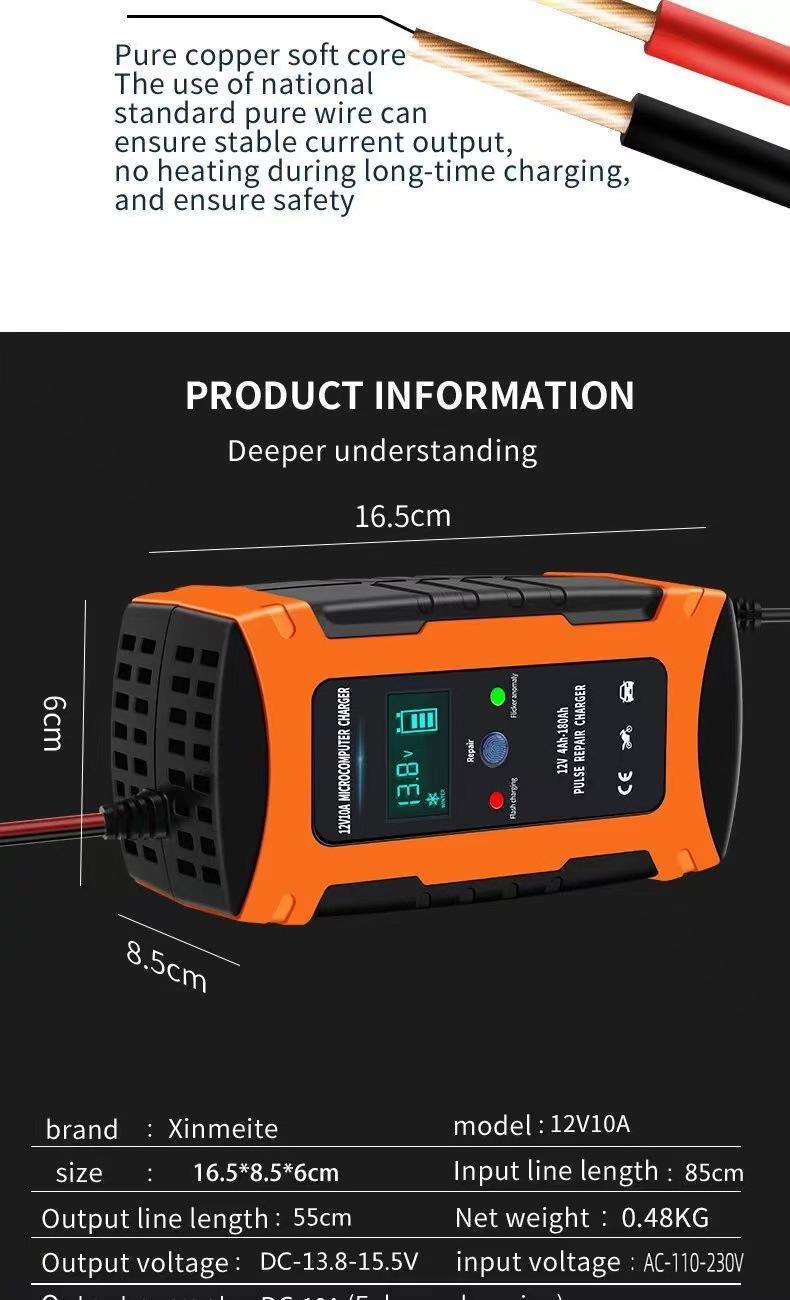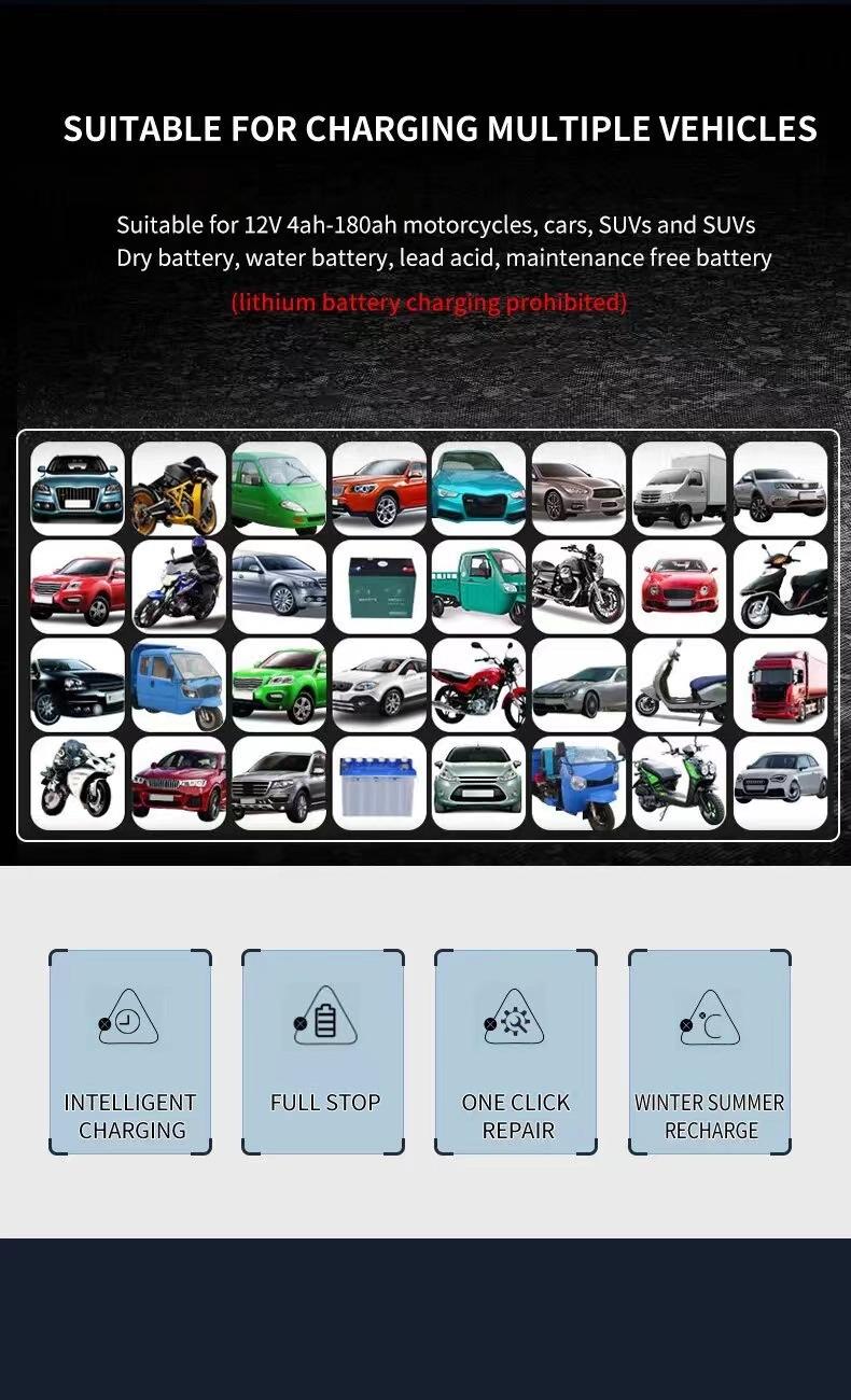Cargador de Batería de Coche y Motocicleta Transfronterizo 12V10A Cargador de Batería Agm Start-Stop Reparación Inteligente por Pulsos