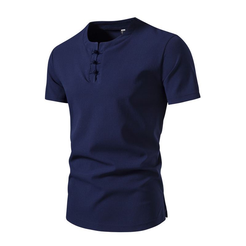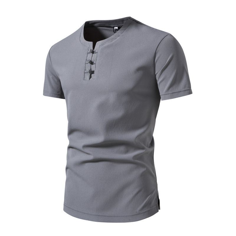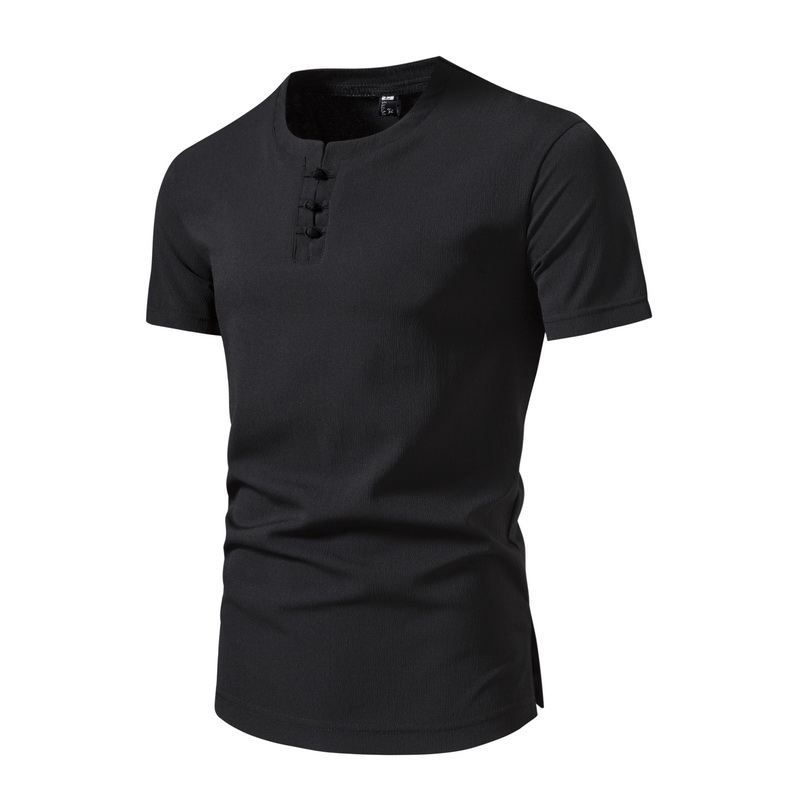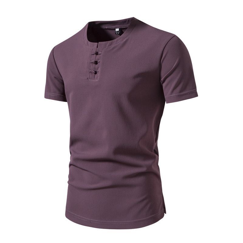 Camisa de manga corta con cuello alto y hebilla de color liso para hombre de verano transfronterizo, camisa para hombre, jersey para hombre, camisa de manga corta