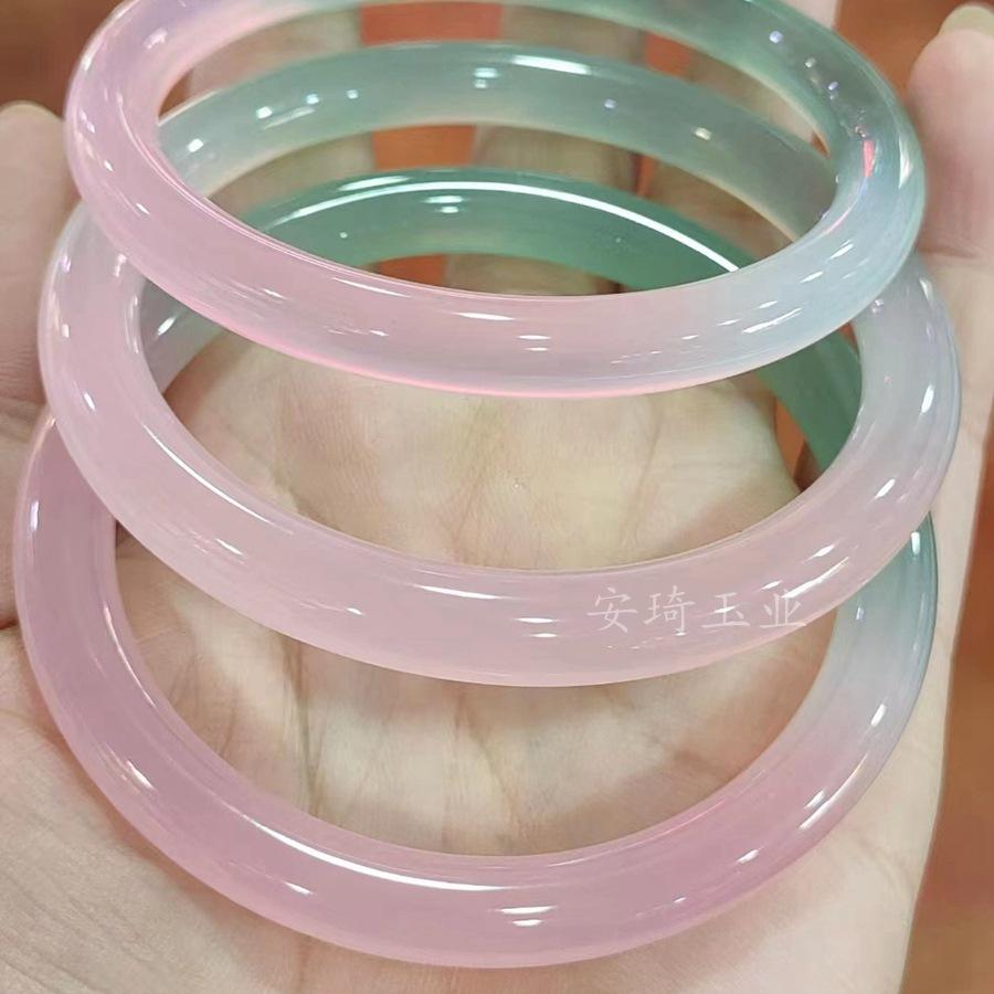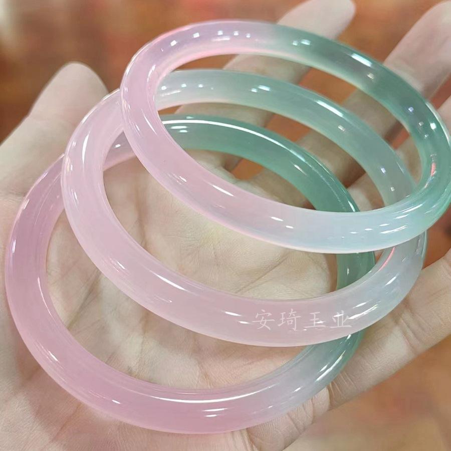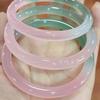 Pulsera de Ágata Verde Semipaisaje Semiacuática Helada Natural de Alto Grado para Mujer, Pulsera de Belleza de Barra Redonda con Degradado Verde Aceite, Joyería de Talla de Jade
