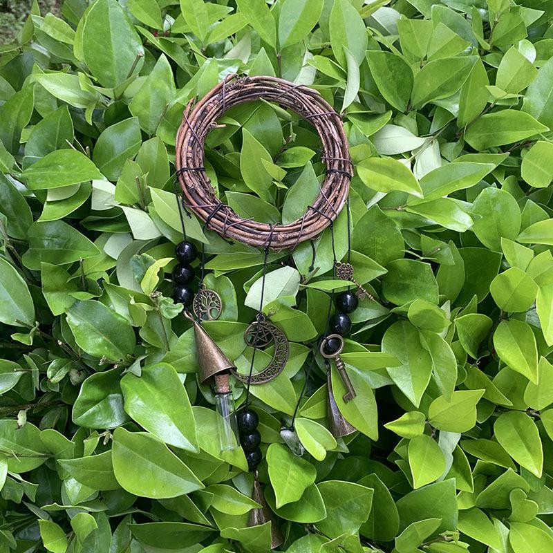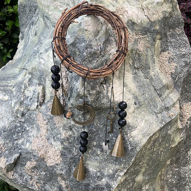 Campana de Anillo de Ratán/Campana Decorativa para Manija de Puerta/Campana de Protección de Bruja/Decoración de Puerta/Regalo de Bruja