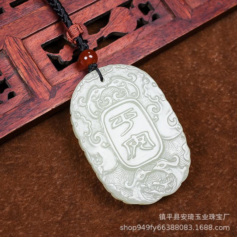 Colgante de jade Hetian de Xinjiang, seguro para hombres y mujeres, colgante de jade blanco natural seguro, marca Ruyi, venta al por mayor