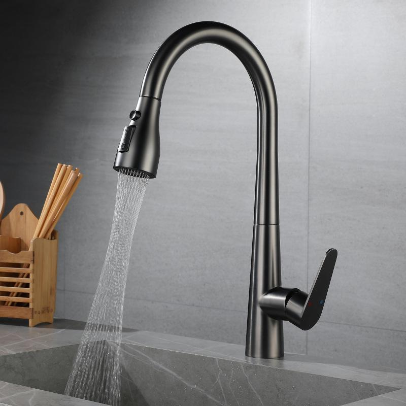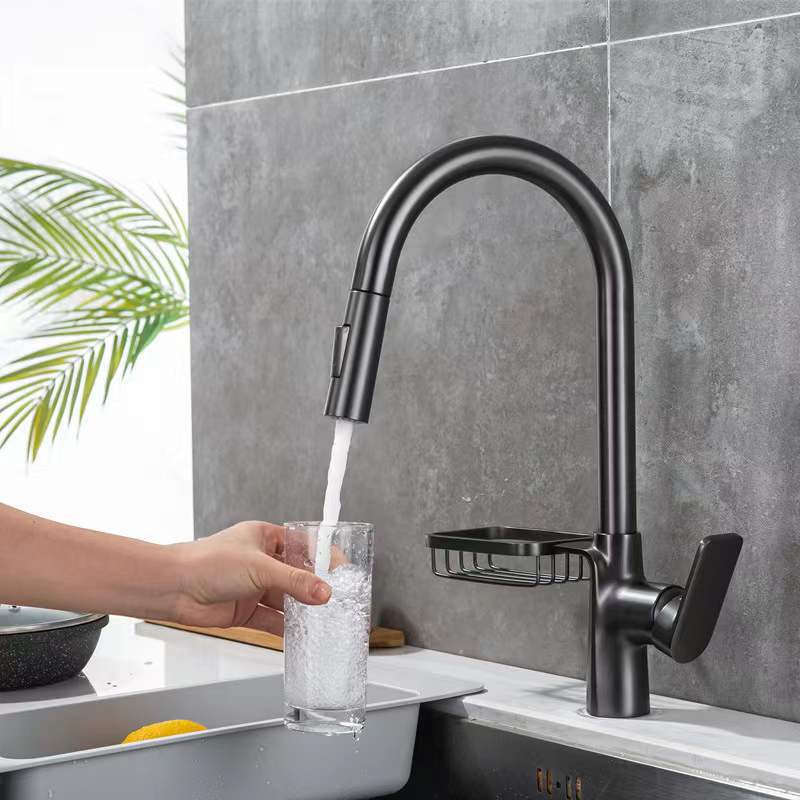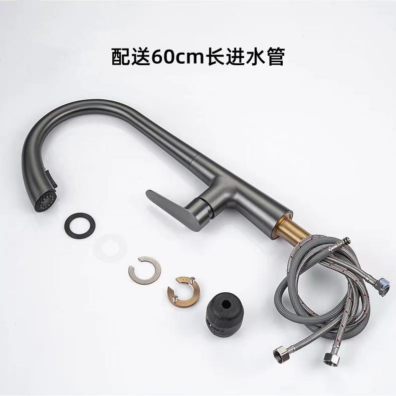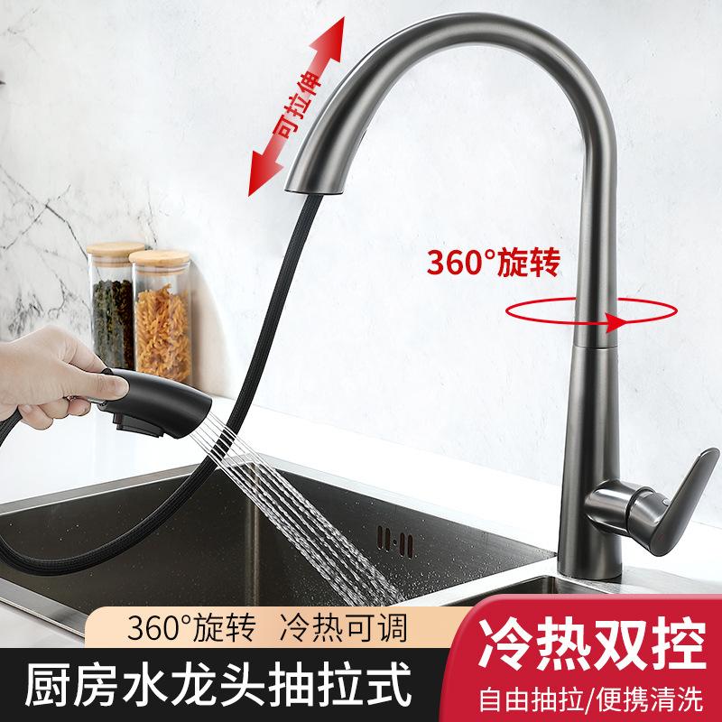 Tong Tian'an Grifo para Agua Caliente y Fría Gris Cañón Comercio Exterior Fregadero Fregadero Oculto Extraíble Dragón Fabricante Venta al por Mayor