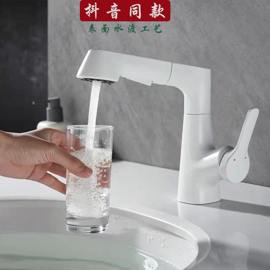 Grifo elevable blanco de cobre puro para celebridad de internet, multifunción, giratorio, extraíble, para lavabo de cocina, elevable, grifo de agua fría y caliente
